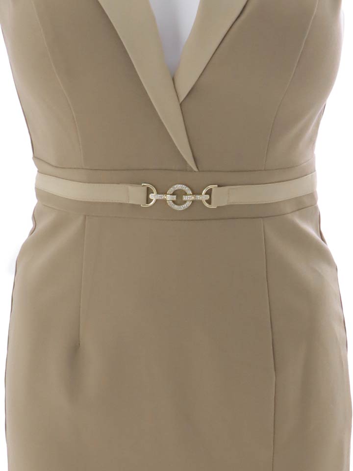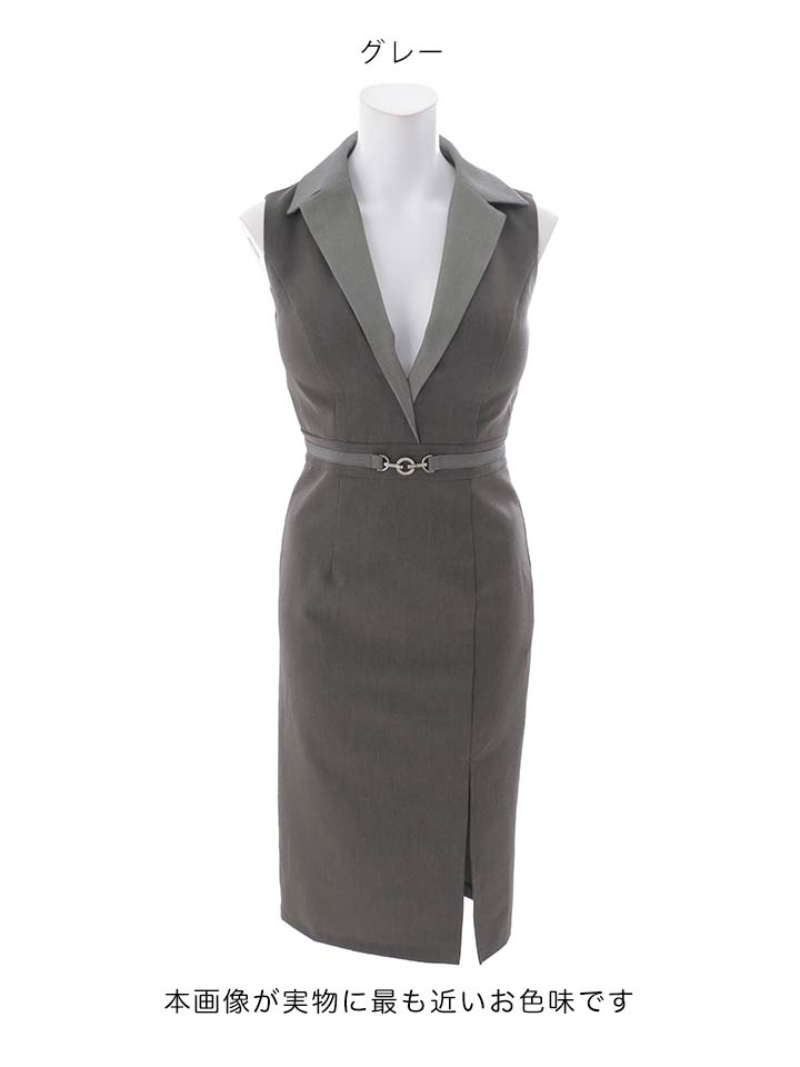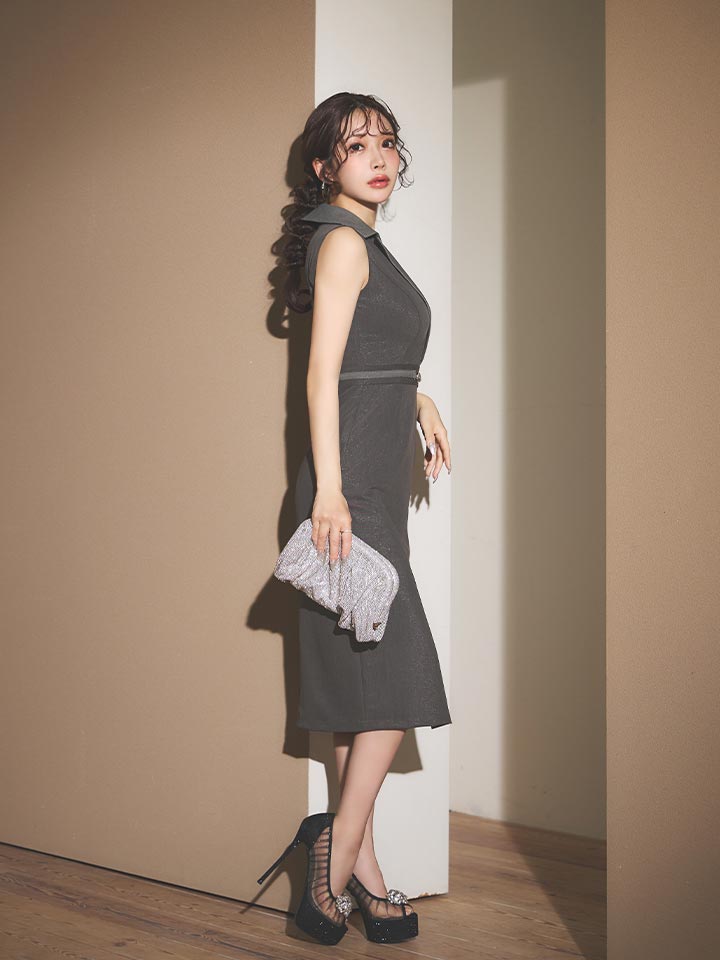 襟付きデザインで清潔感溢れるミディアムタイトドレス。