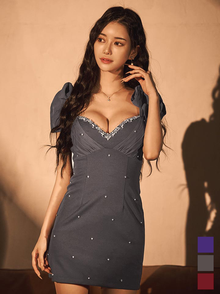 【即日発送】新色登場!ショルダーリボンVネックビジュータイトミニドレス/キャバドレス【XS-Lサイズ/3カラー】[OF03] 【YN】dzwvCA