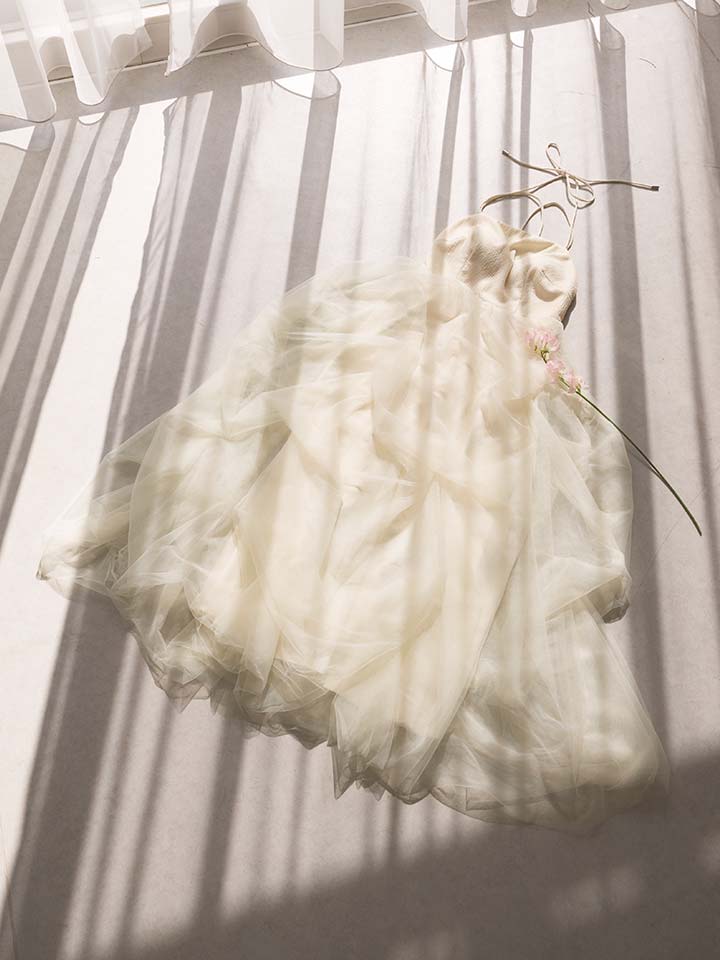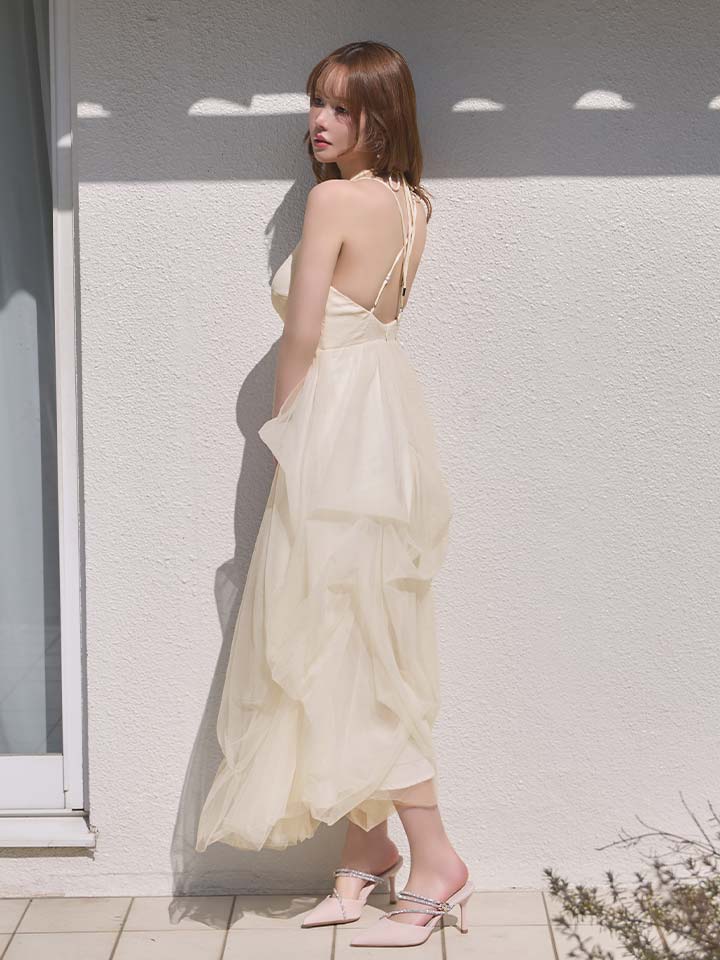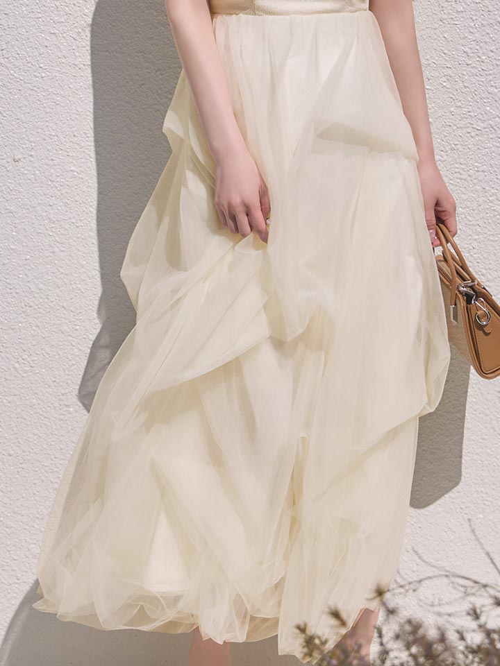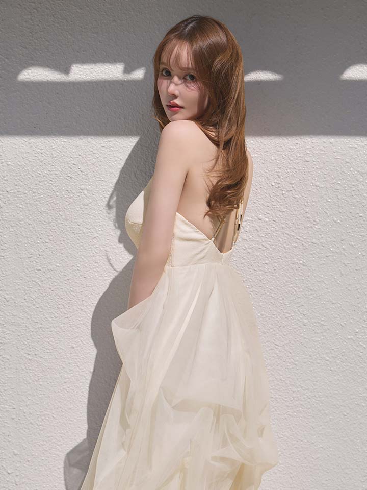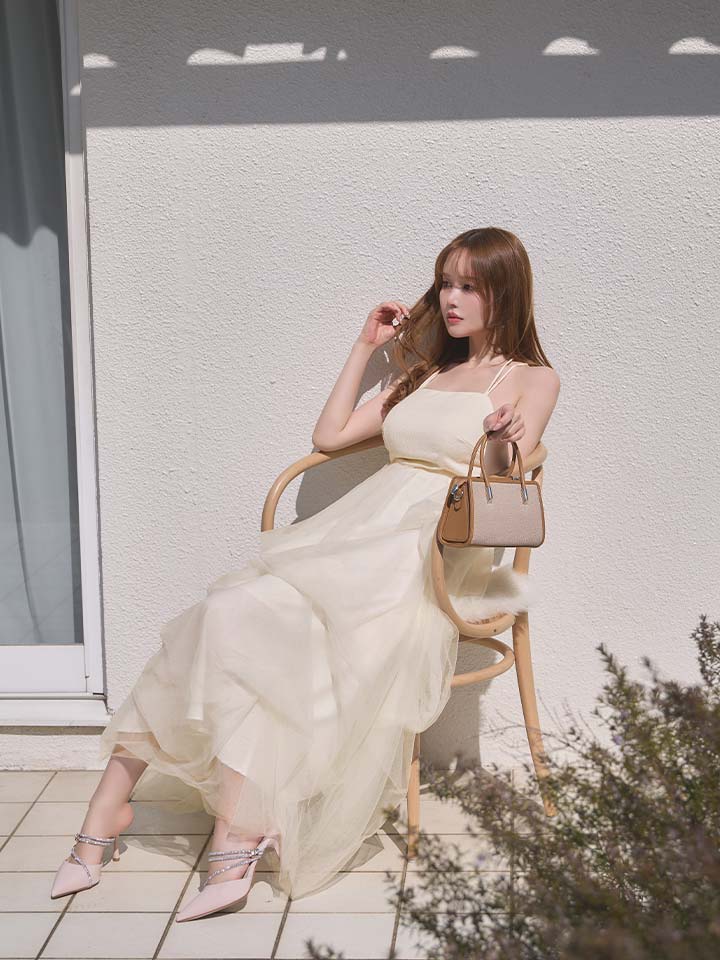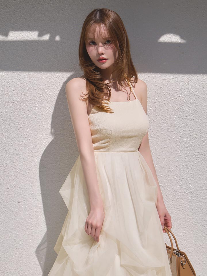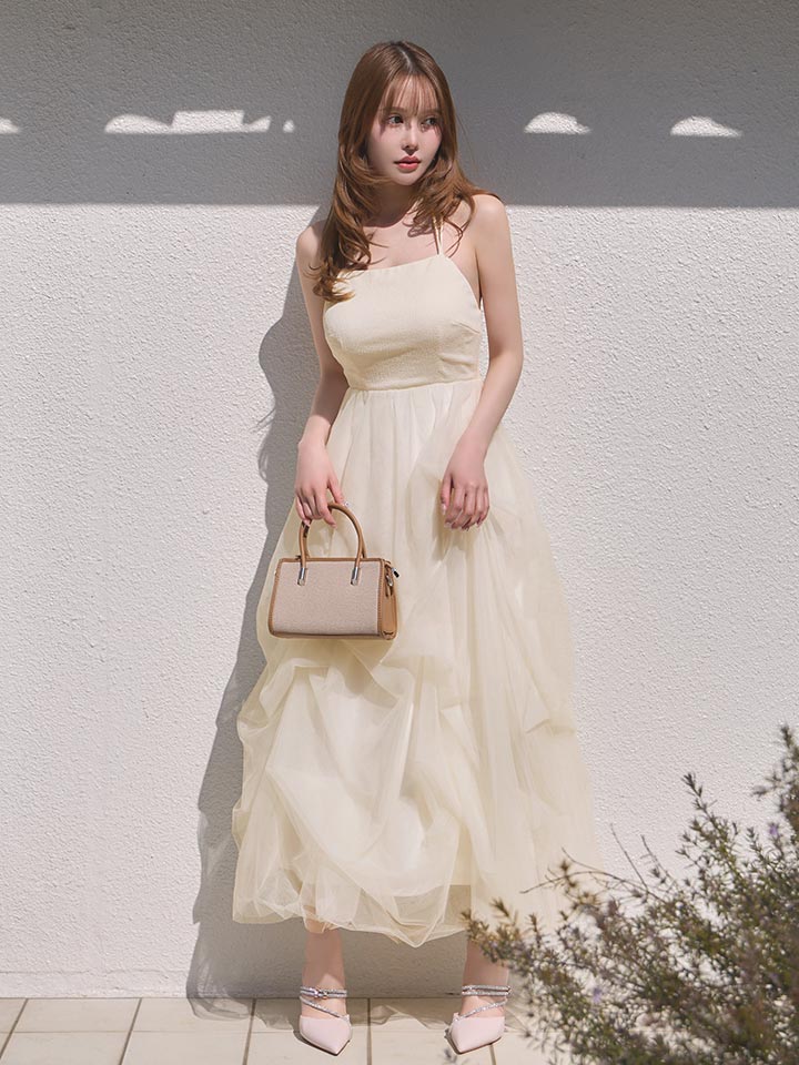 華やかなレイヤードスカートが同伴や食事シーンにもぴったり。