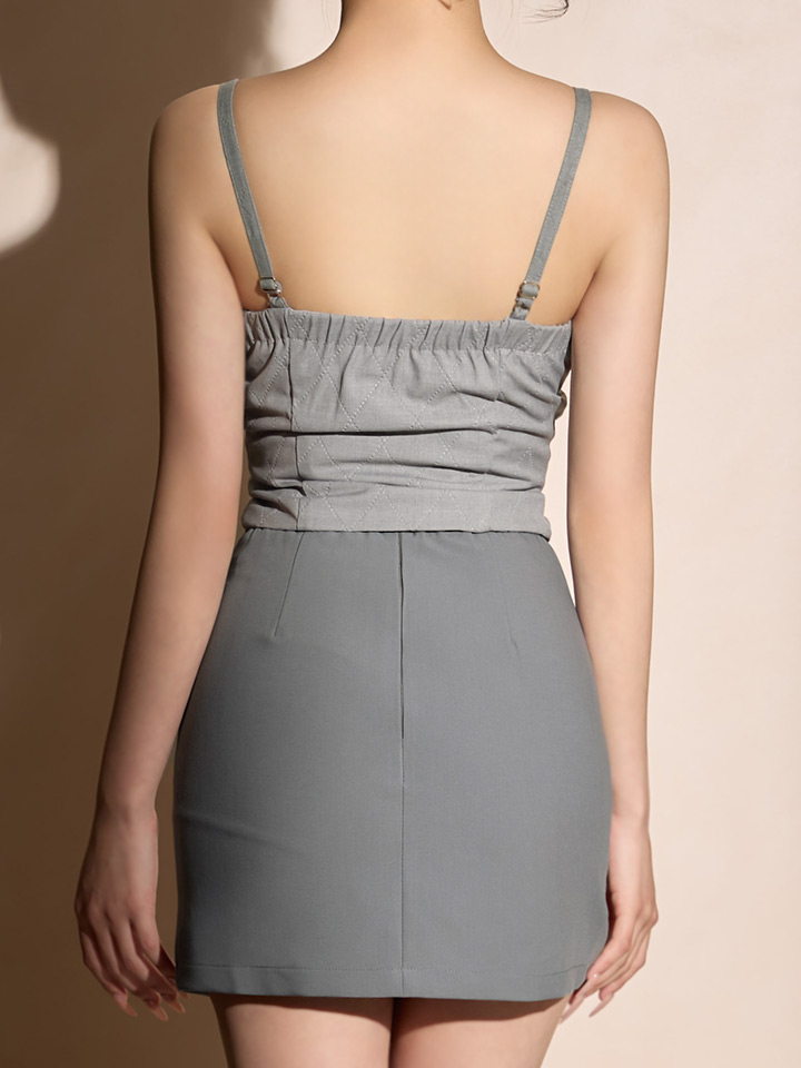 キャミ紐にあしらった装飾がさりげないアクセントになるセットアップミニドレス。