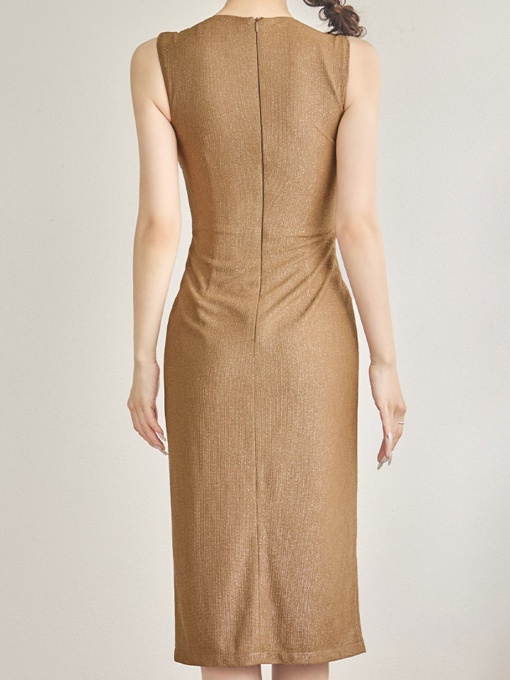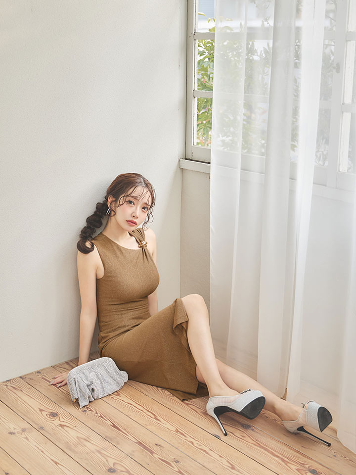 ノースリーブラメタイトスリットミディアムドレス/キャバドレス【XS-Mサイズ/2カラー】[OF03]【YN】dzwvFV [5910YNdzwvFV-260321-1]