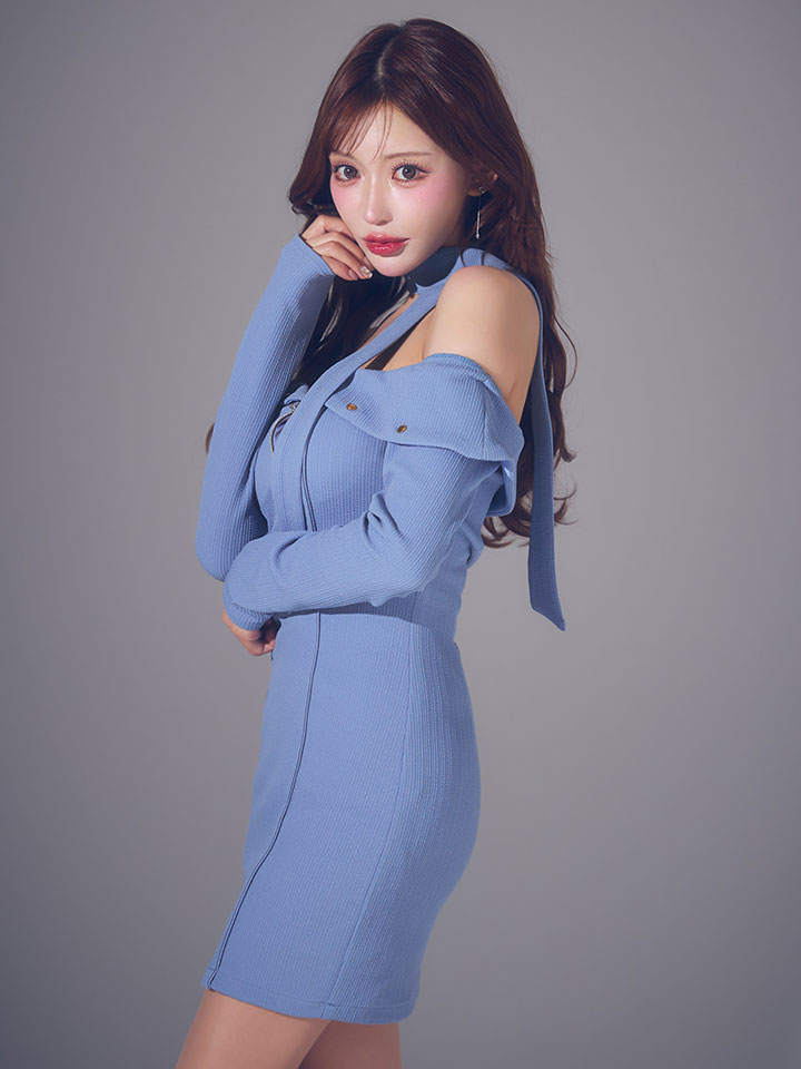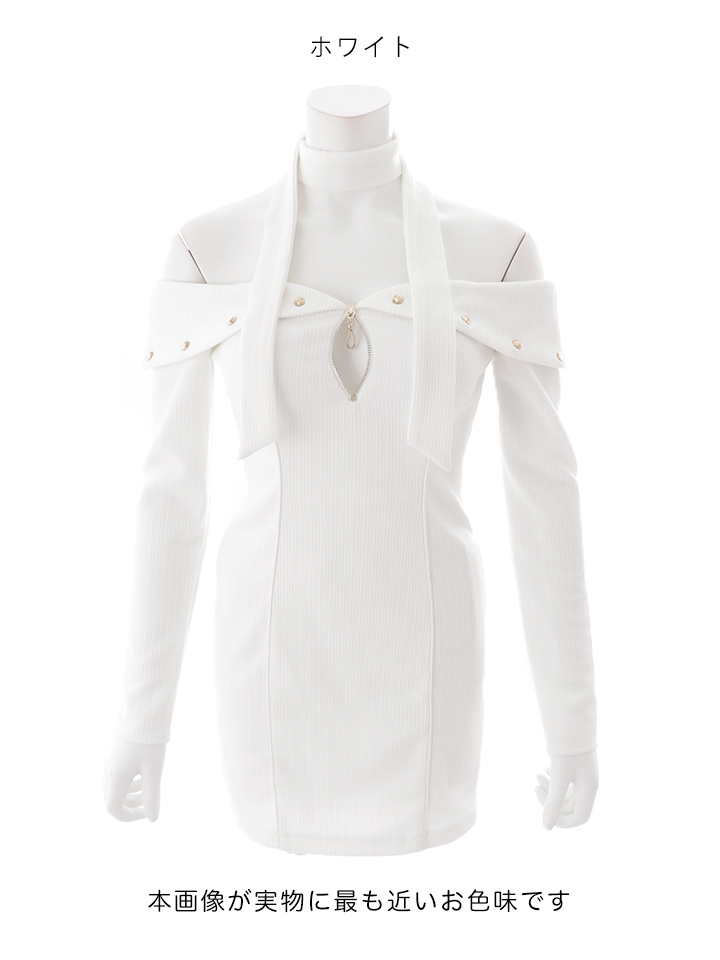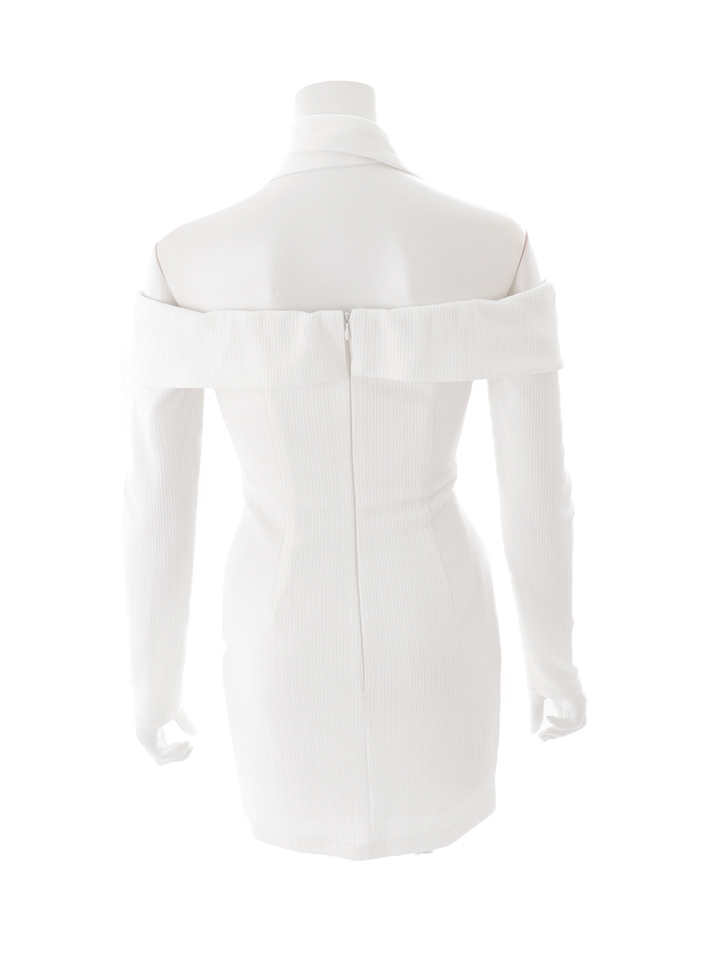 長袖とオフショルダーが上品に肌見せを演出するミニドレス。