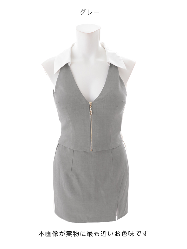 襟付きジップセットアップタイトミニドレス/キャバドレス【S-Mサイズ/2カラー】[OF03]【YN】dzwvAG [5881YNdzwvAG-260206-2]