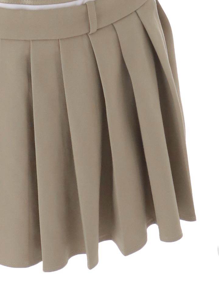揺れ感のあるプリーツスカートが女性らしさを演出し、スタイルアップも叶えます。
