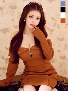 さりげない肩見せと大胆な胸元デザインで、色っぽさたっぷりのミニドレス。