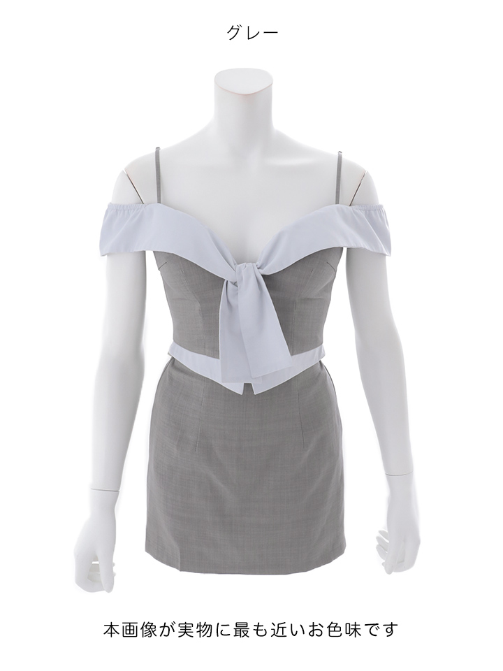 フロントタイオフショルセットアップタイトミニドレス/キャバドレス【XS-Mサイズ/1カラー】[OF03]【YN】dzwvAG