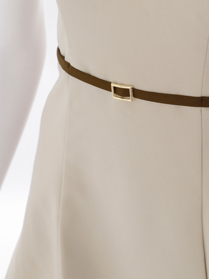 ウエストの細ベルト風デザインと程よく広がるフレアスカートで、