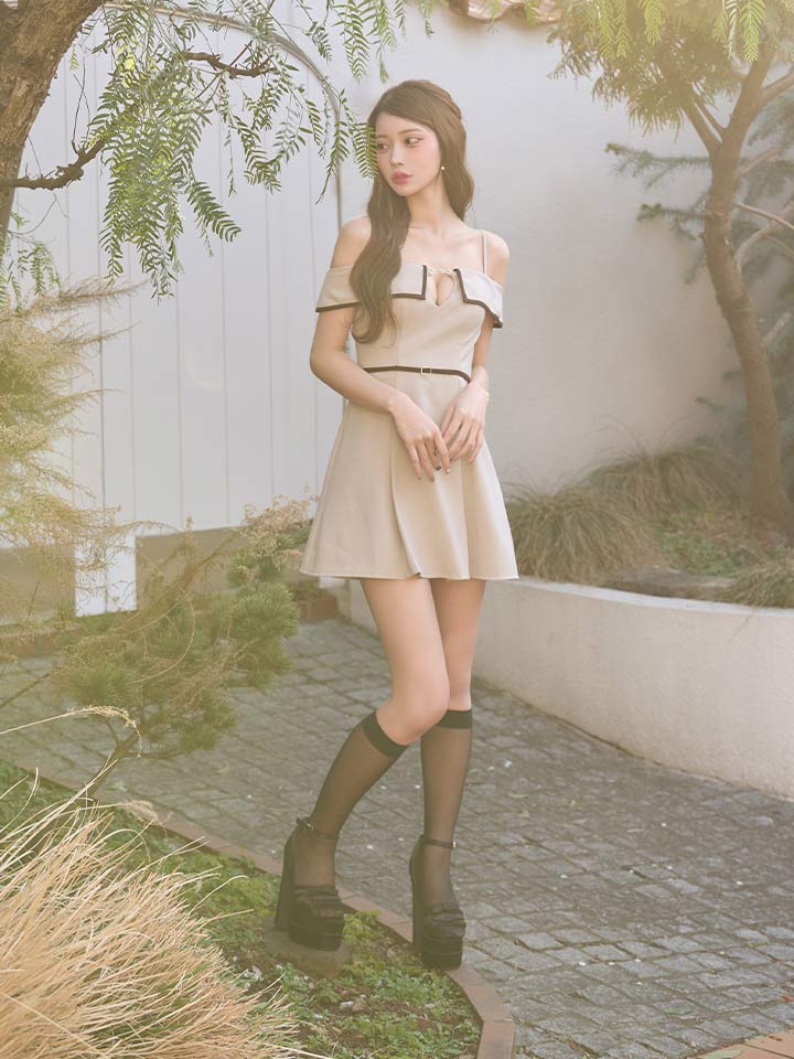 ウエストベルト風オフショルキャミミニドレス/キャバドレス【XS-Mサイズ/1カラー】[OF03]【YN】dzwvAG [5899YNdzwvAG-260316-1]