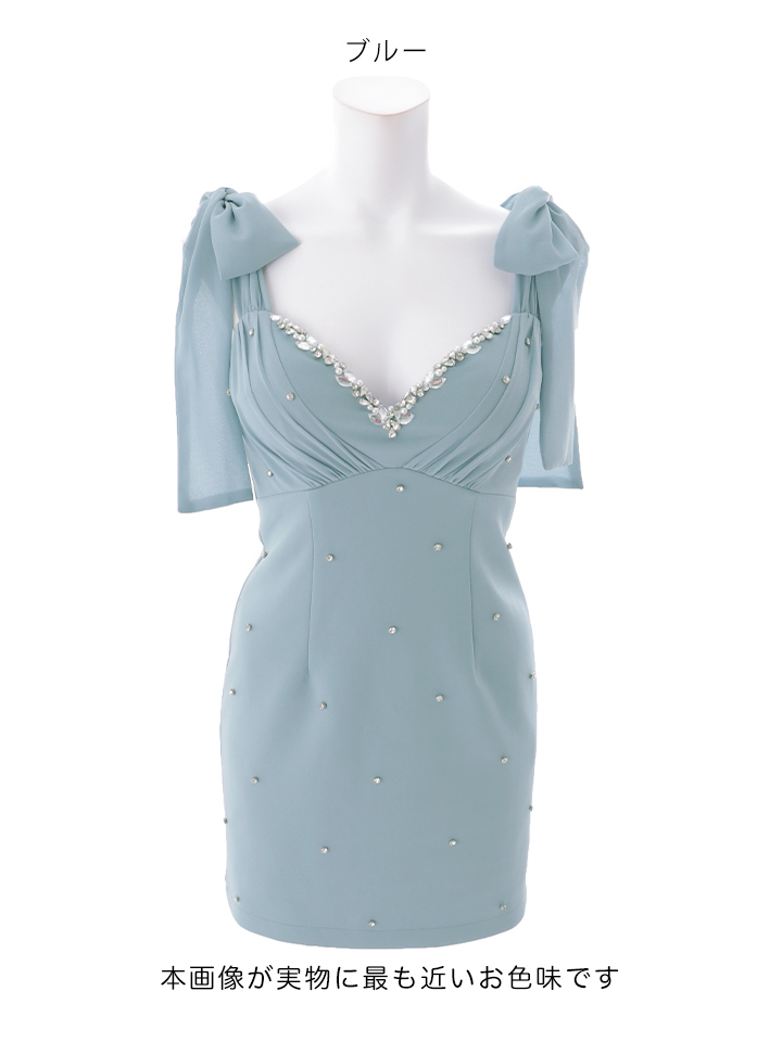 送料無料!ショルダーリボンVネックビジュータイトミニドレス/キャバドレス【XS-Lサイズ/5カラー】【一部予約商品/2月中旬発送予定】[OF03] 【YN】dzwvCA [5716YNdzwvCA-260210-2]
