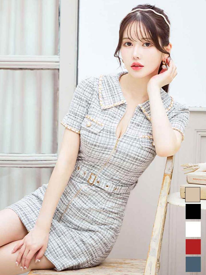 【送料無料!】【即日発送】フロントジップツイードワンピース/キャバドレス【XS-XLサイズ/5カラー】[OF03-X] 【YN】dzwv