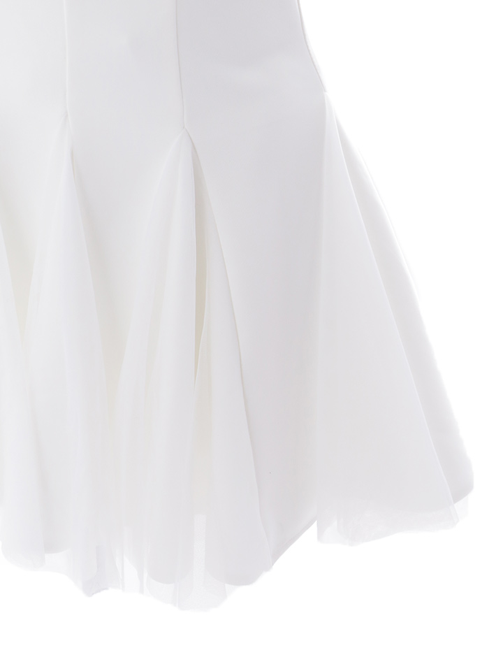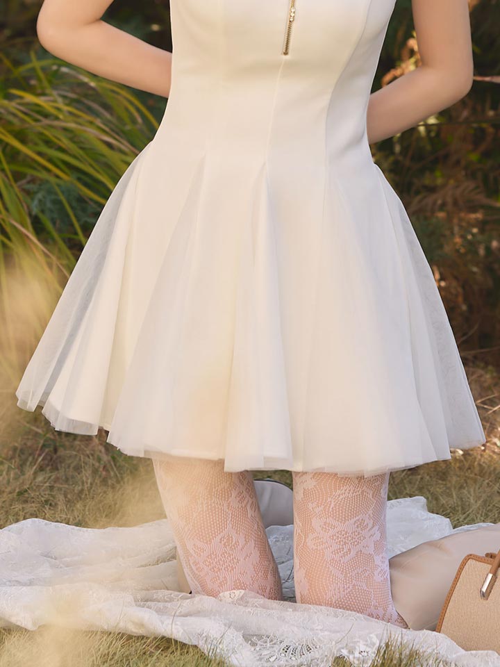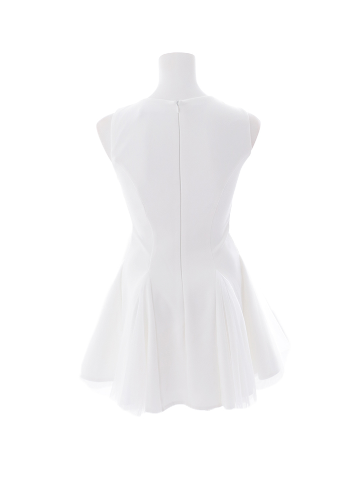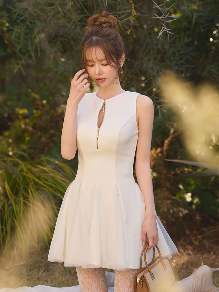 シルエットの美しさが際立つフレアミニドレス。