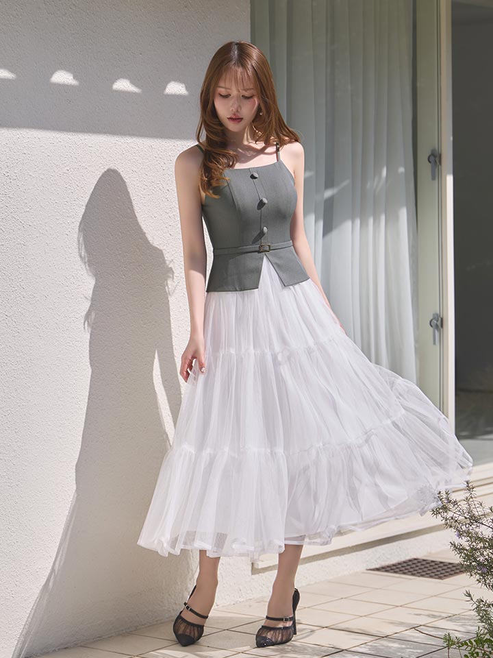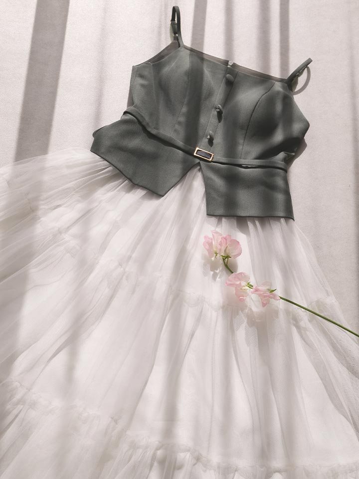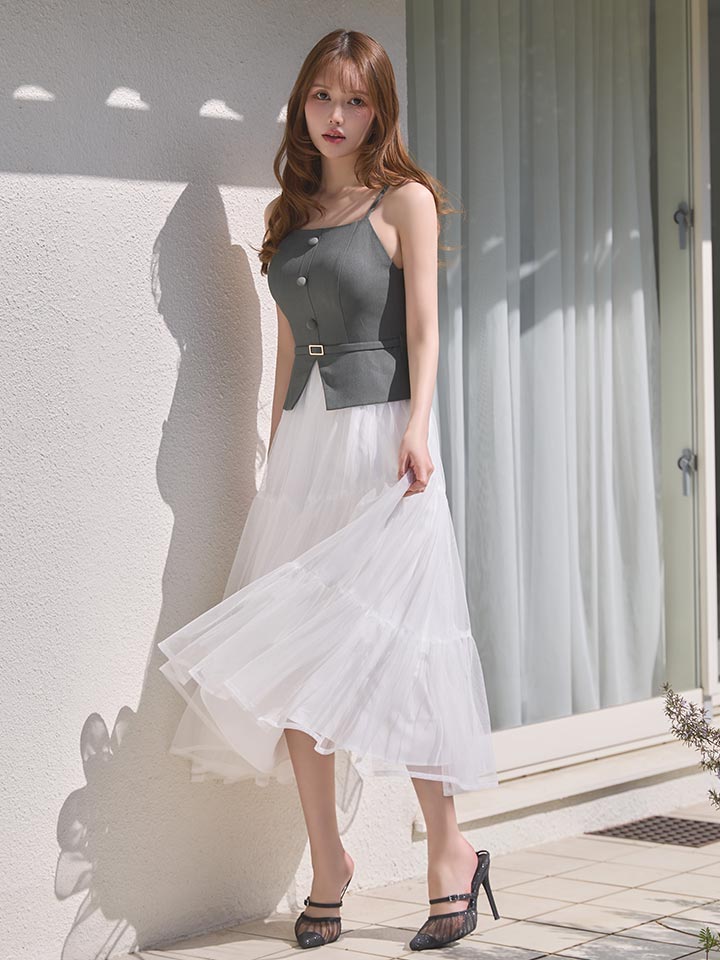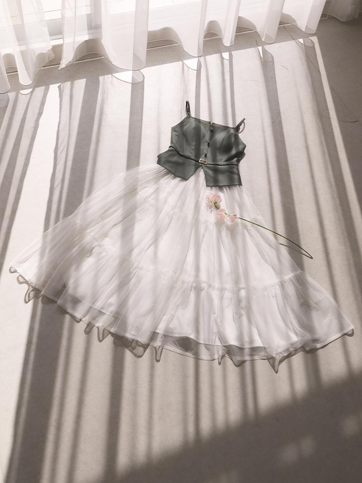 異素材を組み合わせたデザインが目を惹く、今っぽさたっぷりのワンピース。