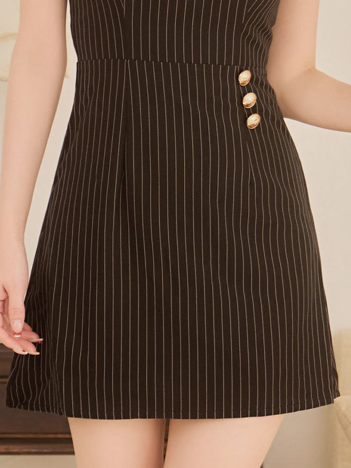 ベルトショルダーノースリーブストライプミニドレス/キャバドレス【XS-Mサイズ/1カラー】[OF01] 【SB】dzk [3027SBdzk-260217-1]