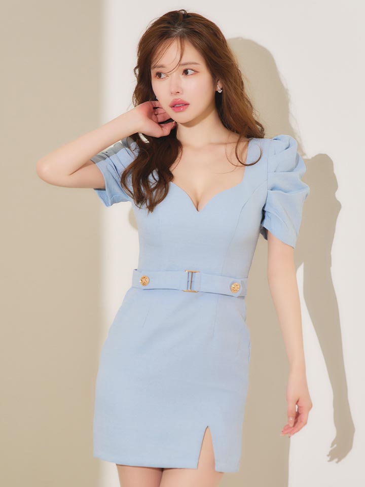 #ブルー #ミニドレス/ミニ丈 #半袖,ショートスリーブ #谷間見せ(魅せ) #背中隠し(ブラOK) #タイト #スリットあり #上品・華やか・お姉さん系 #JEWELSトレンド