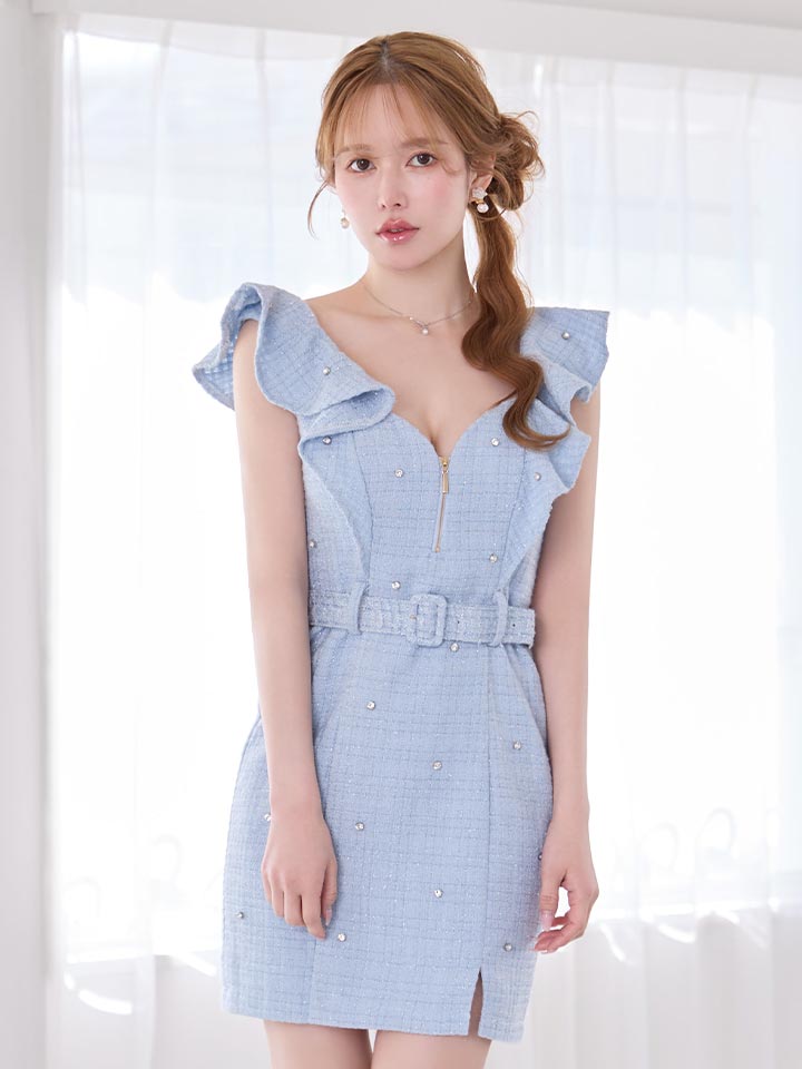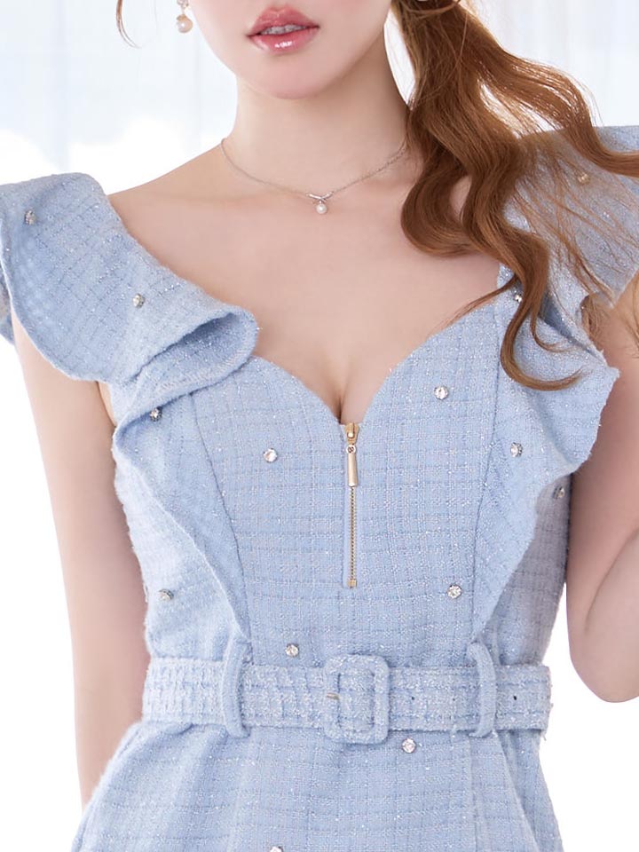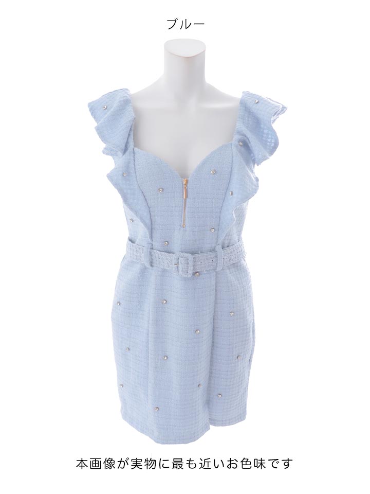 新色登場!ビジューラメツイードフリルドレス/キャバドレス【XS-XLサイズ/4カラー】[OF01] 【SB】dzw [3165SBdzw-260224-1]