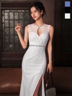 送料無料!【即日発送】シフォンリボンビジュータイトロングドレス/キャバドレス【S-Lサイズ/2カラー】[OF03]【YN】dzw [5886YNdzw-260225-1]