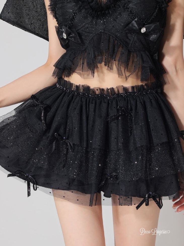 [セット内容] ブラ/チュールスカート/ペチコートパンツ/うさ耳カチューシャ/背中リボン