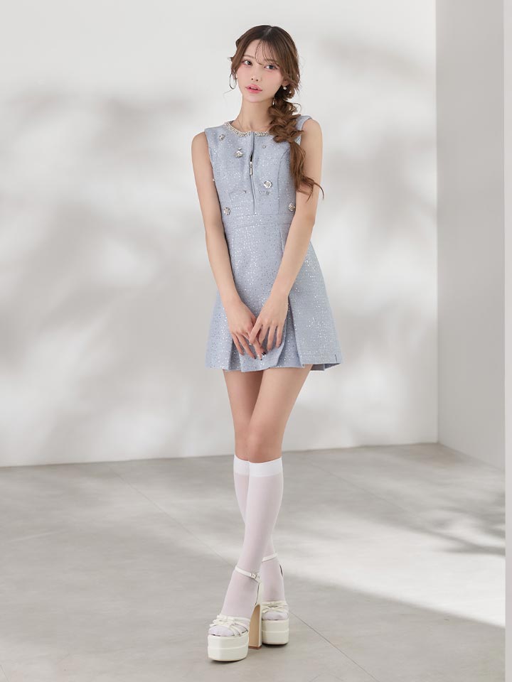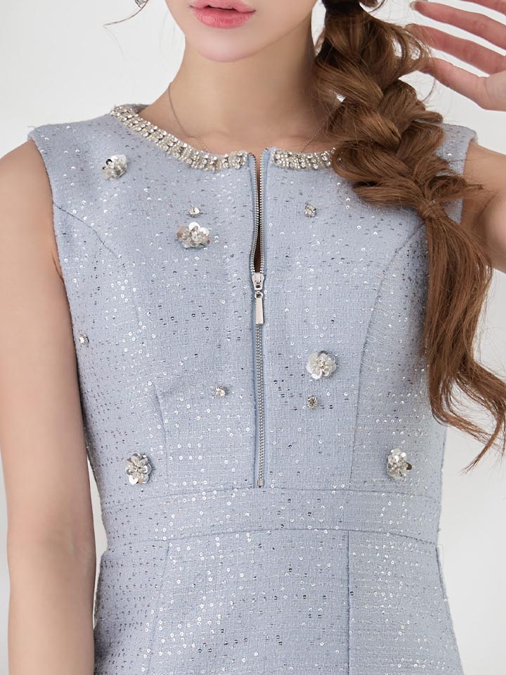 送料無料!【即日発送】新色登場!ジップアップフラワースパンコールツイードミニドレス/キャバドレス【XS-XLサイズ/3カラー】[OF01] 【SB】dzwvBF [8553SBdzwvBF-260227-2]