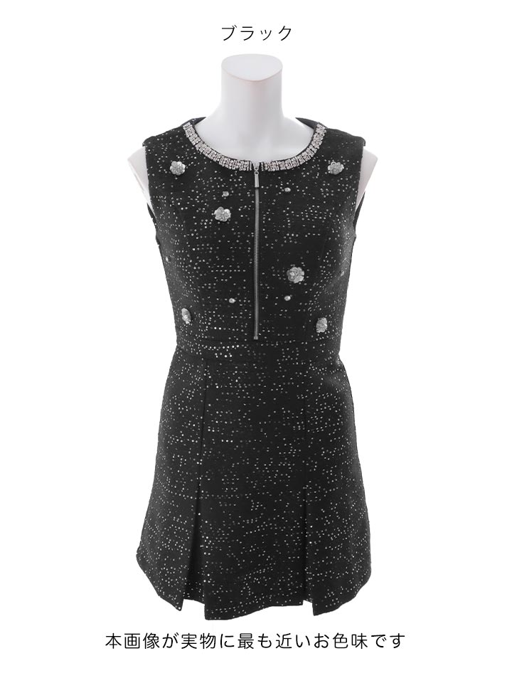 送料無料!【即日発送】新色登場!ジップアップフラワースパンコールツイードミニドレス/キャバドレス【XS-XLサイズ/3カラー】[OF01] 【SB】dzwvBF