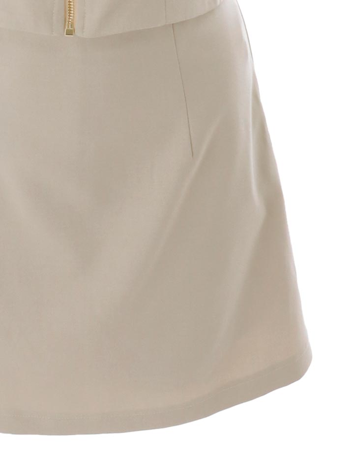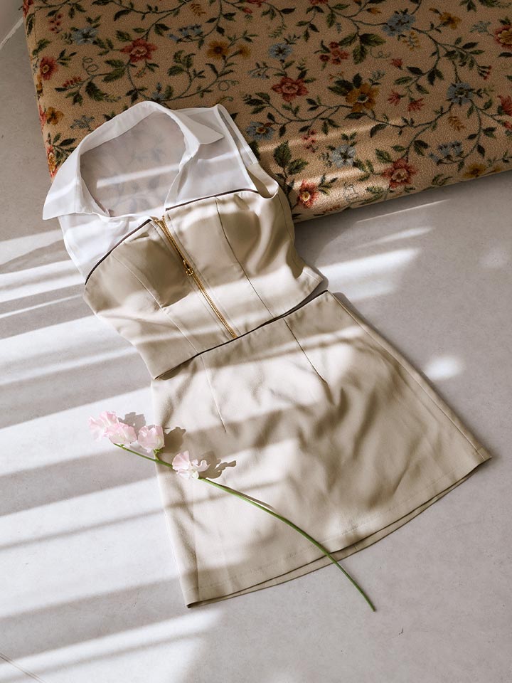 きれいめデザインが上品さを引き立てつつ、ミニ丈で程よい色気もキープ。