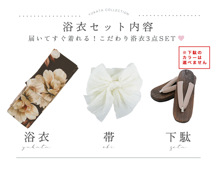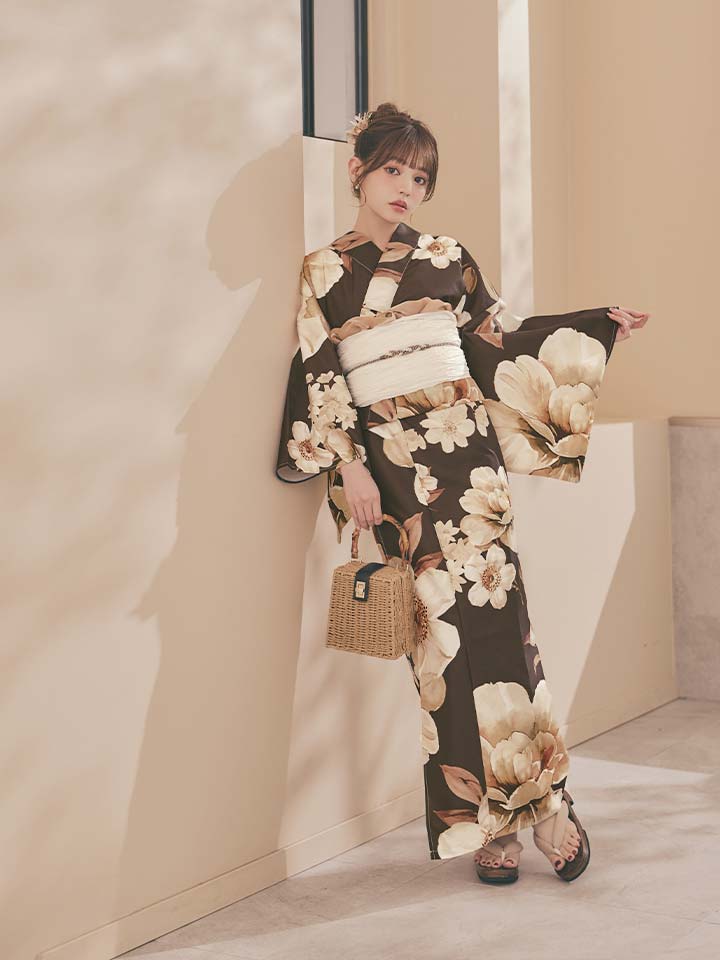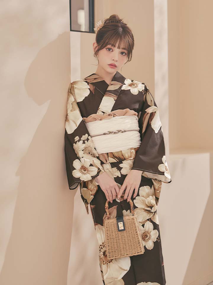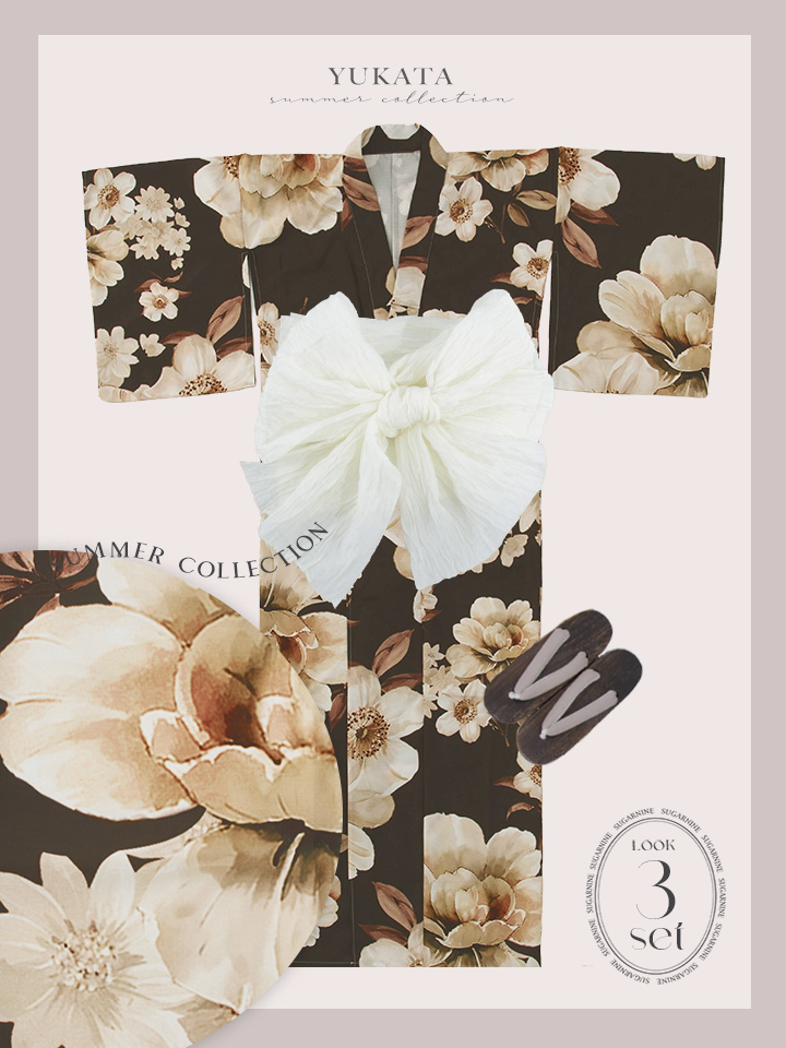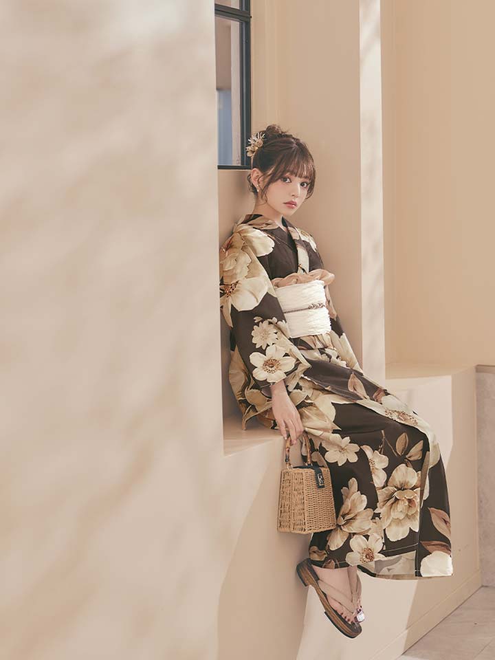 【即日発送】ブラウンエレガントフラワー浴衣【浴衣3点セット 浴衣/帯/下駄】[OF04] [Y-9372-sb-dzjm-BR-F-26PO-260305]