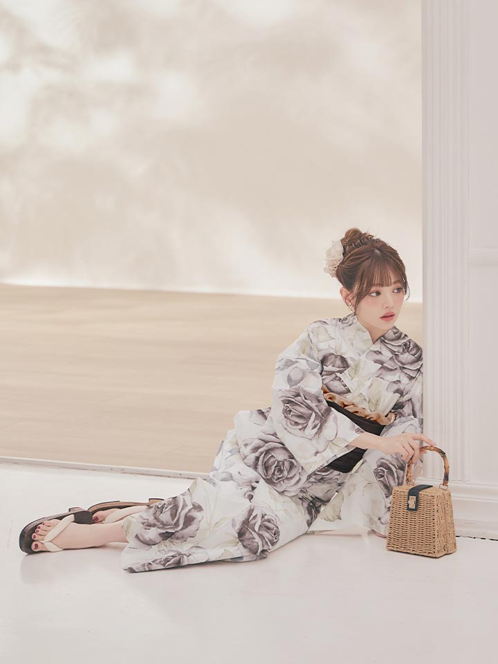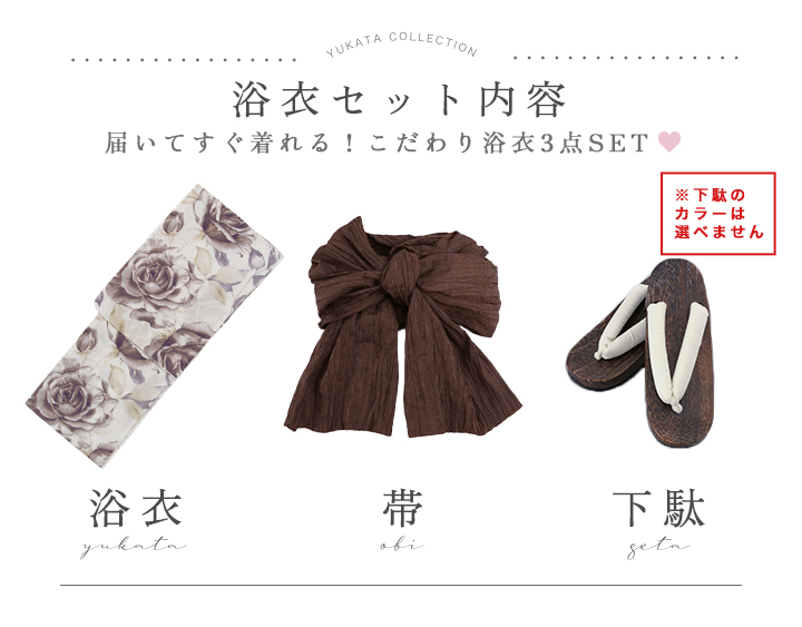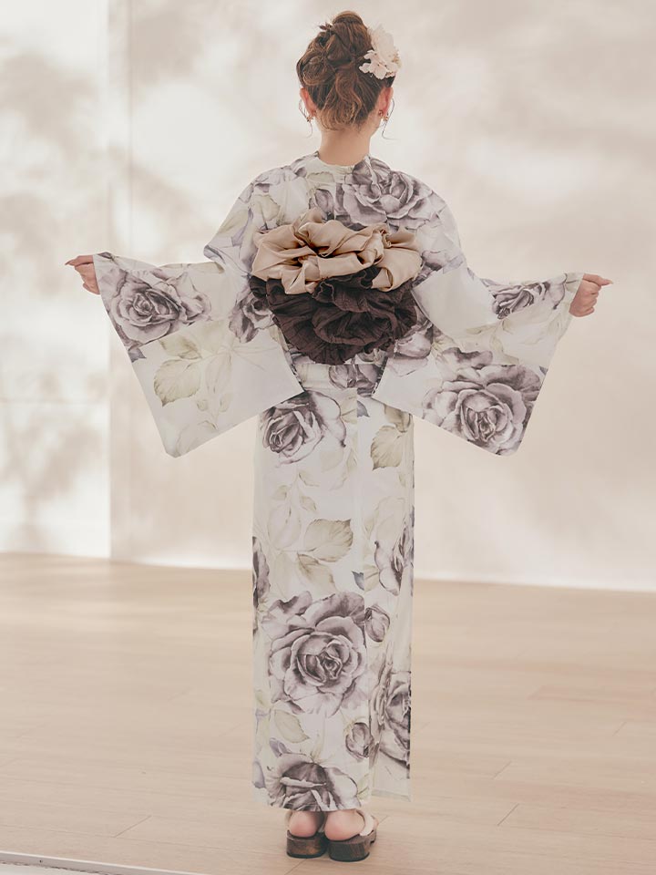 送料無料!エクリュアンティークローズ浴衣【浴衣3点セット 浴衣/帯/下駄】[OF04]【予約 / 4月上旬発送予定】 [Y-9303-kj-BR-F-26PO-260305]