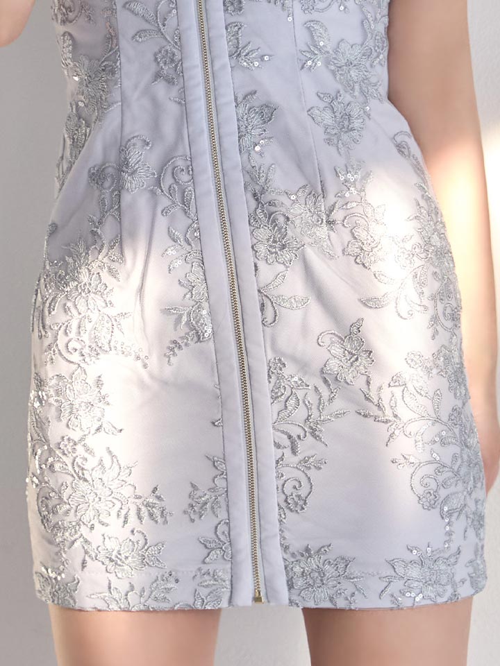 フロントジップ花柄刺繍ミニドレス/キャバドレス【XS-Lサイズ/1カラー】[OF01] 【SB】dzwg