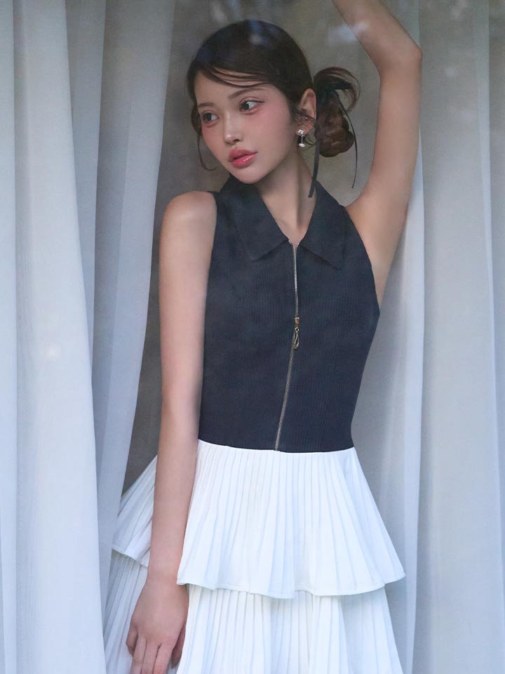 胸元にはジップデザインを施し、開き具合次第で谷間見せも可能。