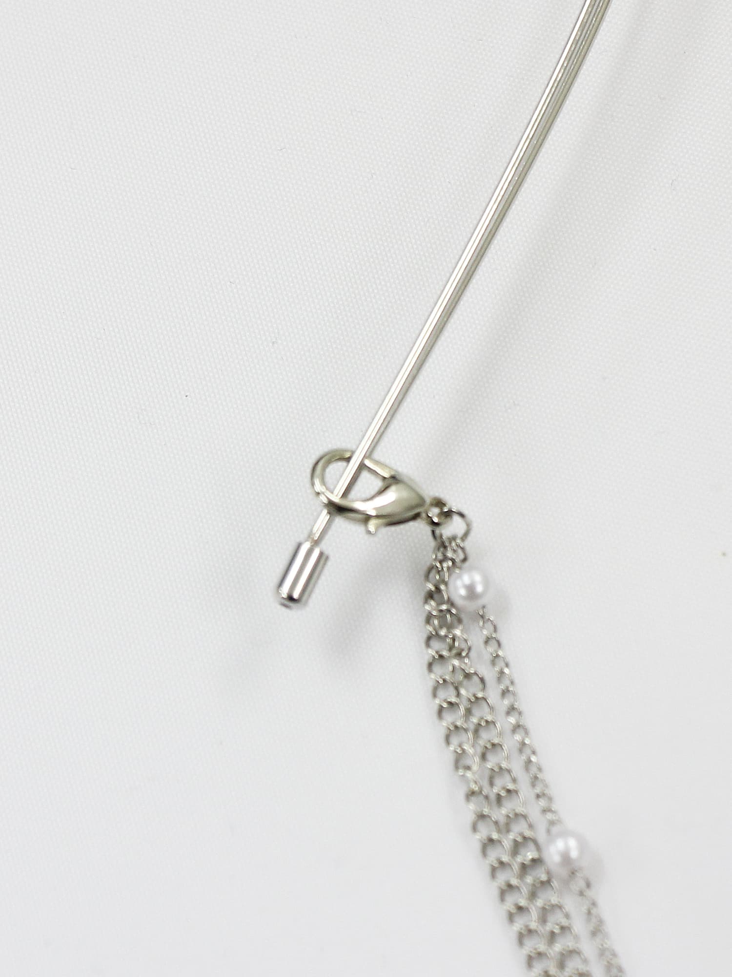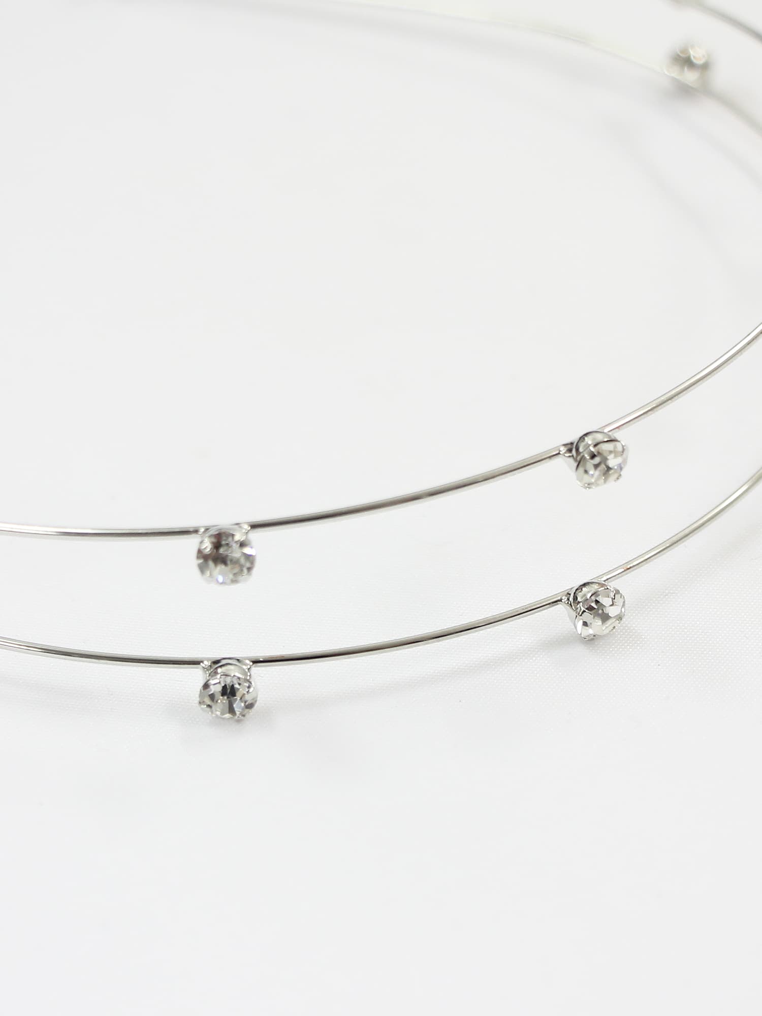 シルバーの細ラインとパール風ビーズが織りなすカチューシャ。