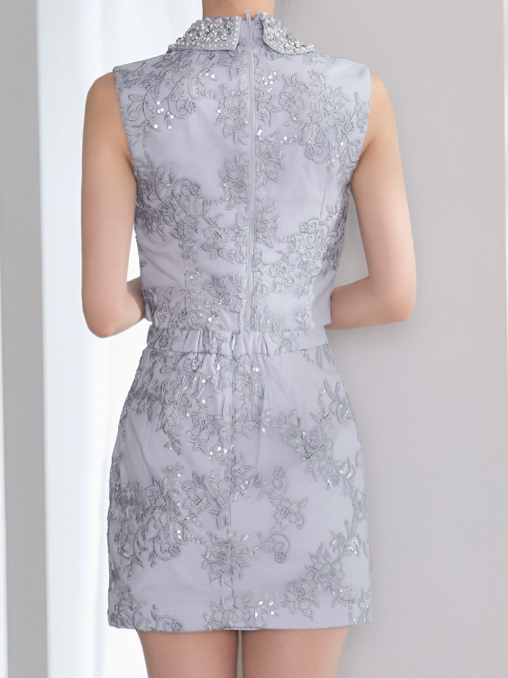 ビジュー襟付き刺繍レースセットアップミニドレス/キャバドレス【XS-Mサイズ/1カラー】[OF01] 【SB】dzwoJS