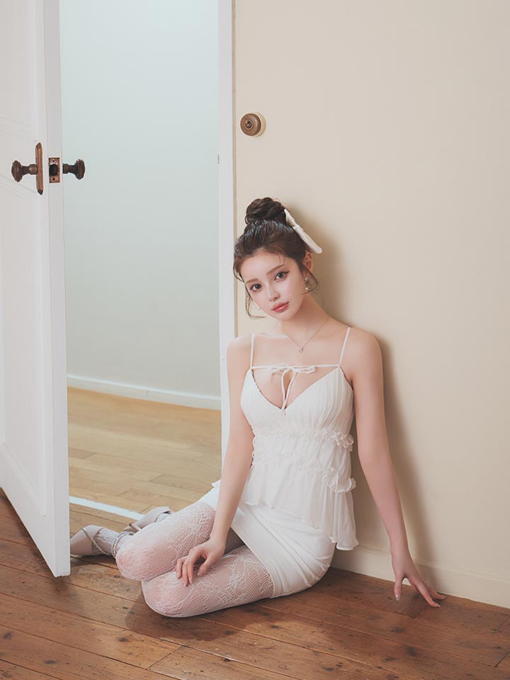 シフォン/ギャザー/リボン/キャミソール/ペプラム/谷間見せ/背中見せ/タイト/ミニドレス/キャバドレス【XS-Mサイズ/2カラー】[OF03] 【YN】NdzwuBF [5933YNdzwuBF-260415-1]