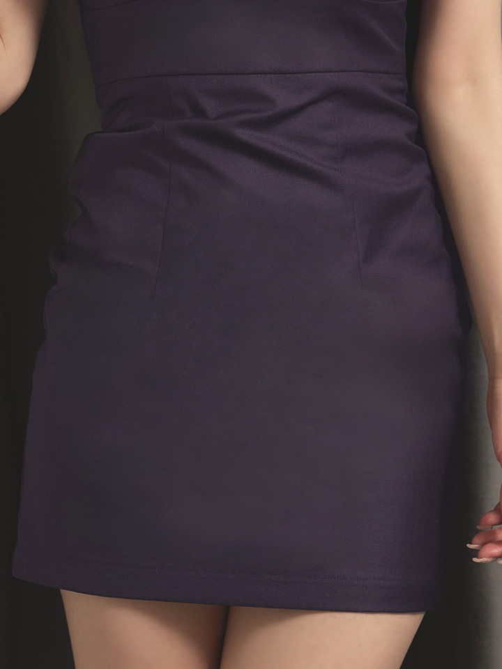 タイトスカートで脚をきれいに見せる、女性らしいシルエットのミニドレス。