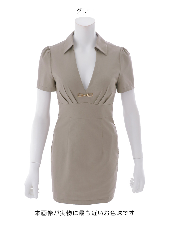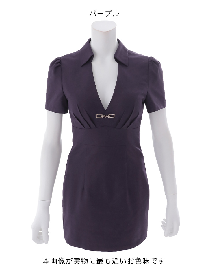 送料無料!襟付き/Vネック/半袖/スーツ生地/無地/タイト/ミニドレス/キャバドレス【XS-Lサイズ/2カラー】【予約商品/4月上旬発送予定】[OF04]【SB】dzmsAG [3660SBdzmsAG-260325-2]
