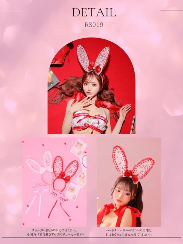 [セット内容] ウサ耳カチューシャ・チョーカー[素材] ハート柄刺繍レース・サテン・レース