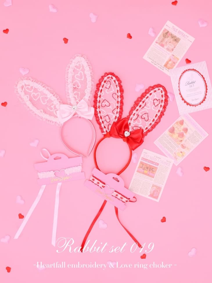 【ハート柄うさ耳カチューシャとチョーカーのSET】