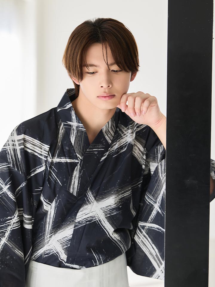 【即日発送】【メンズ浴衣】ダークネイビー地×ホワイトライン浴衣【浴衣3点セット 浴衣/帯/下駄】[OF04] [MSY-9083-ok-NV-26IH-260404]
