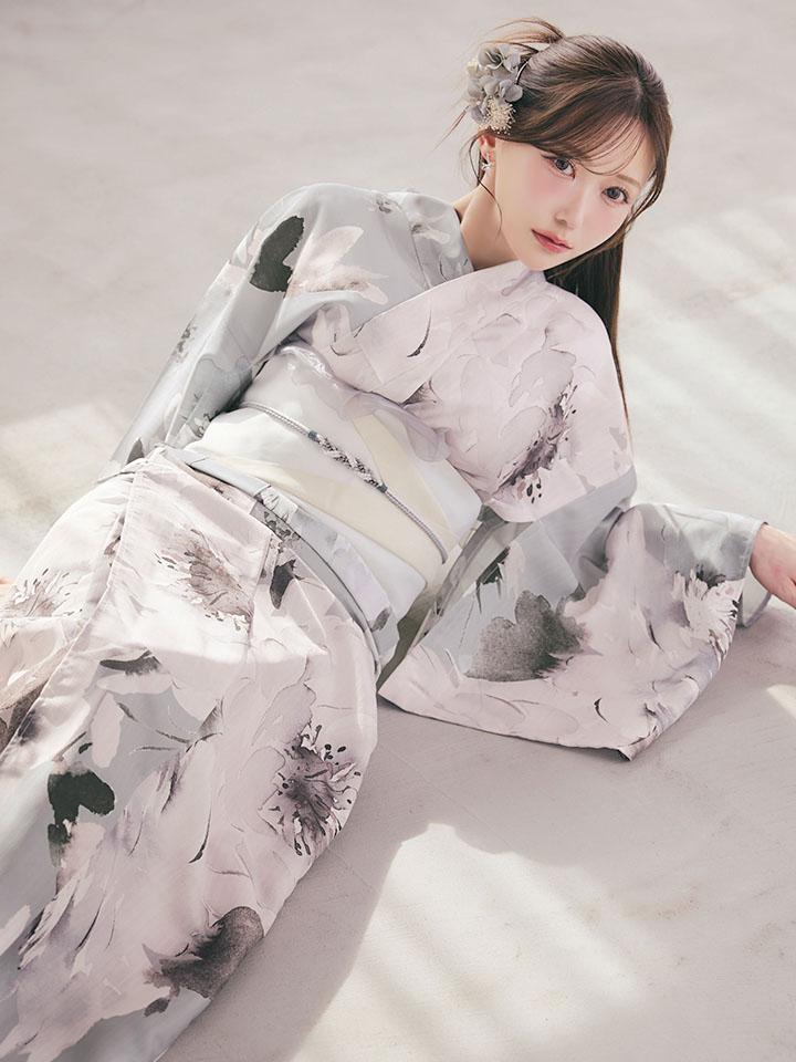 送料無料!グレイッシュフラワー浴衣【浴衣3点セット 浴衣/帯/下駄】[OF04]【予約 / 4月上旬発送予定】 [Y-9362-nz-dzm-GY-F-26YI-260404]