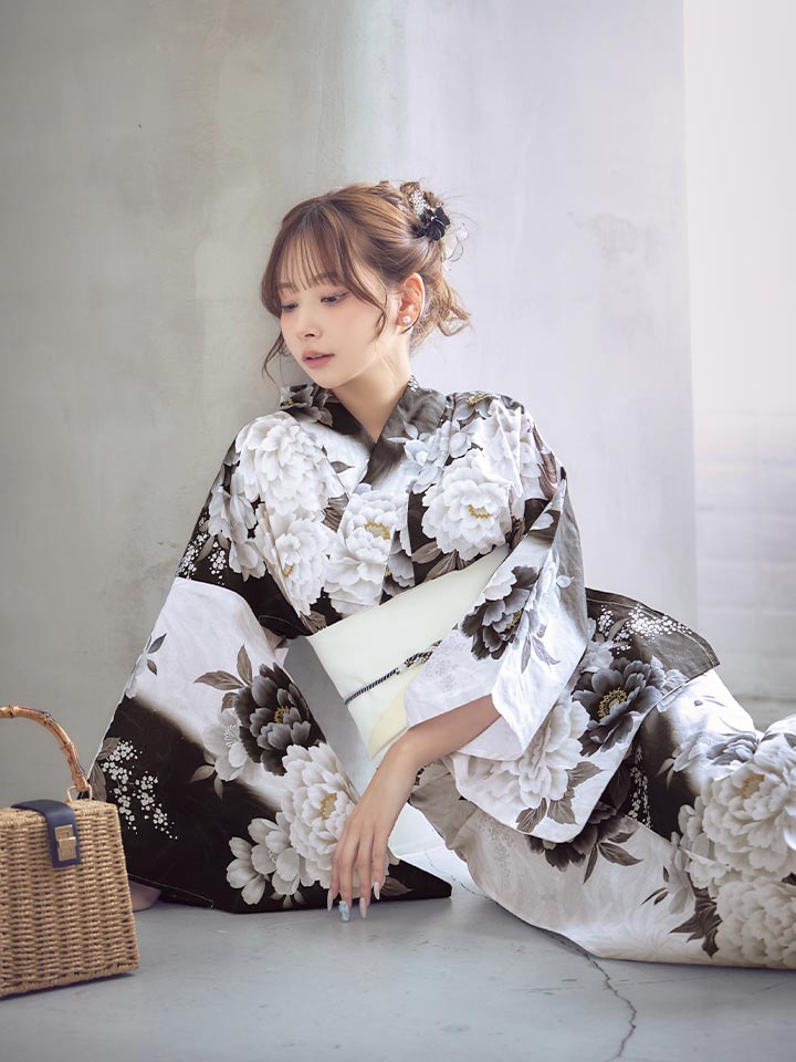 【即日発送】モノトーン牡丹【浴衣3点セット 浴衣/帯/下駄】[OF04] [Y-9417-ok-WxB-F-26PY-260404]