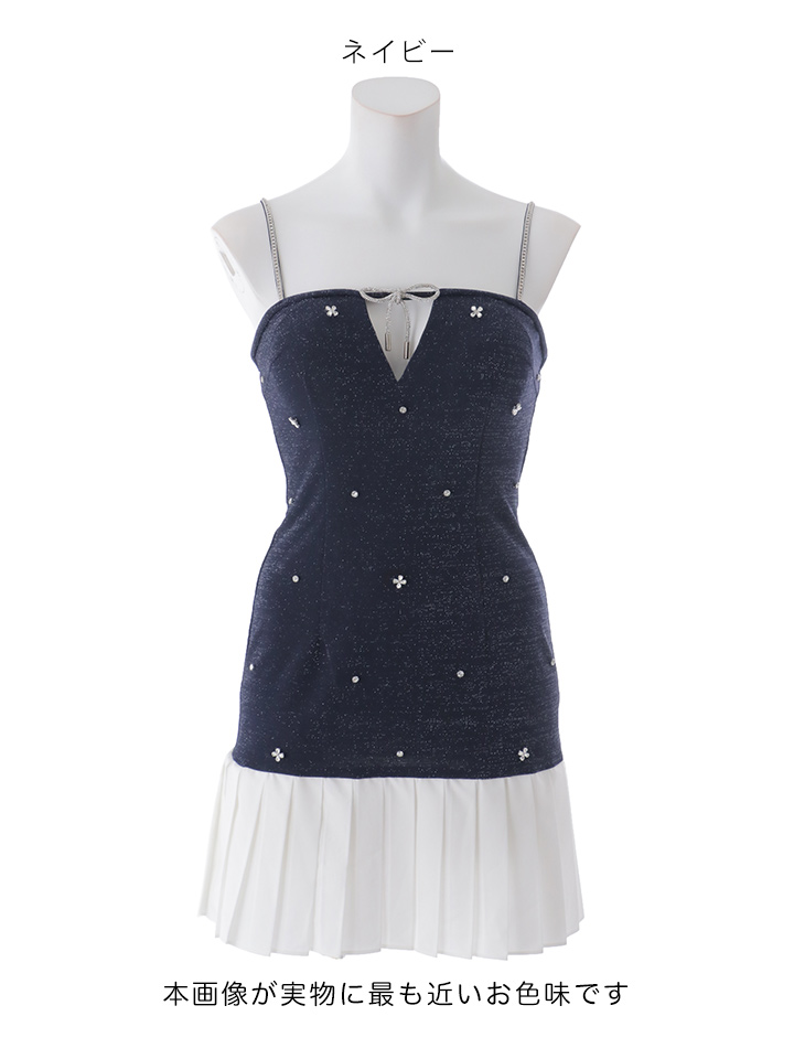 【即日発送】バイカラー/ビジュー/リボン/ラメ生地/キャミソール/ローライズ/プリーツ/ミニドレス/キャバドレス【XS-XLサイズ/4カラー】[OF03] 【YN】dzwAG [5760YNdzwAG-260401-1]