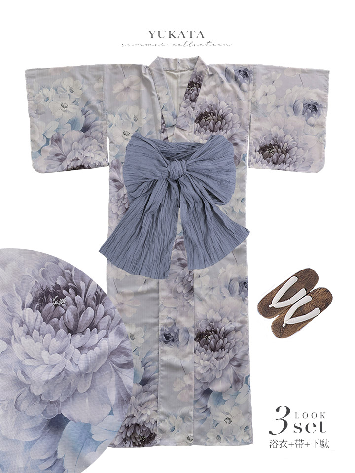 送料無料!ニュアンスブルー浴衣【浴衣3点セット 浴衣/帯/下駄】[OF04]【予約 / 4月上旬発送予定】 [Y-9355-nz-dzm-BL-F-26MY-260403]