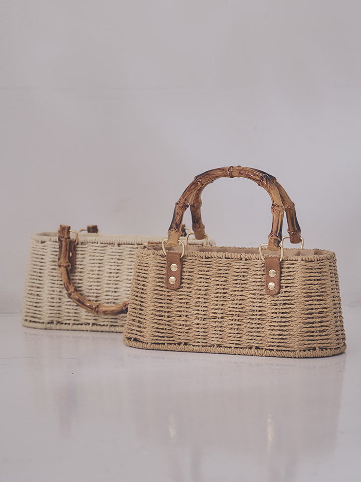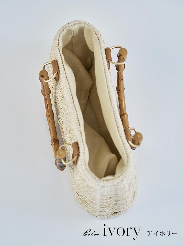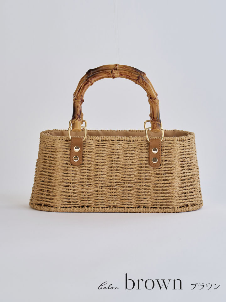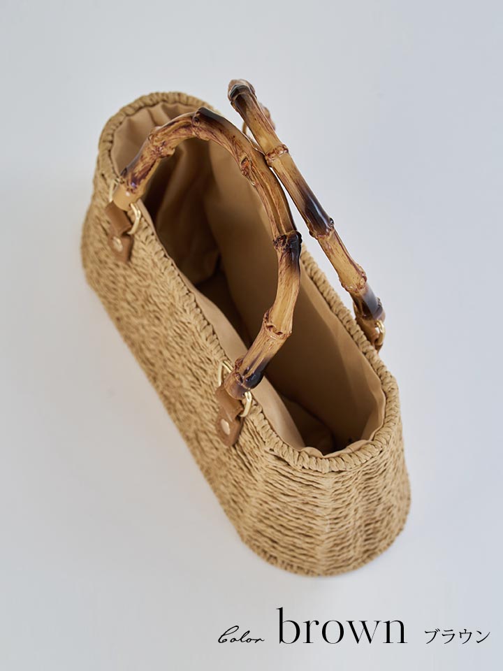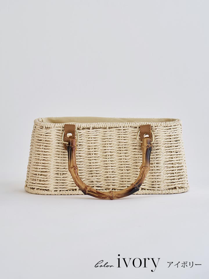 ナチュラルな風合いが魅力のバンブーハンドルかごバッグ。