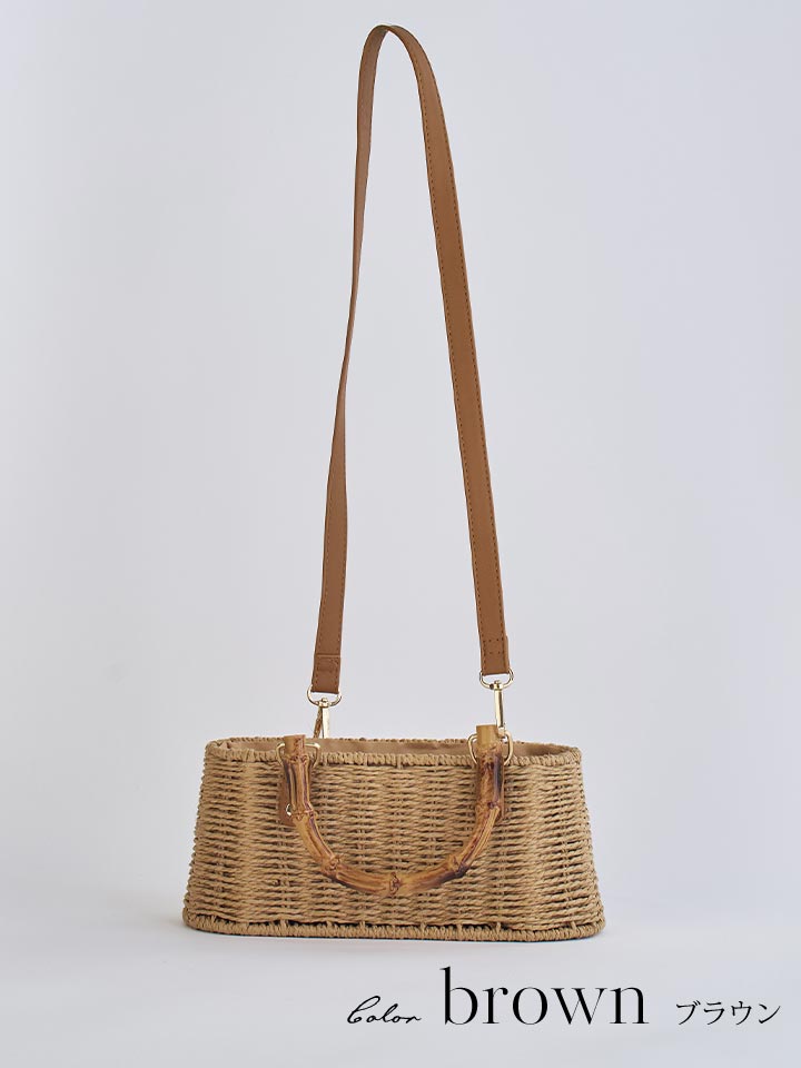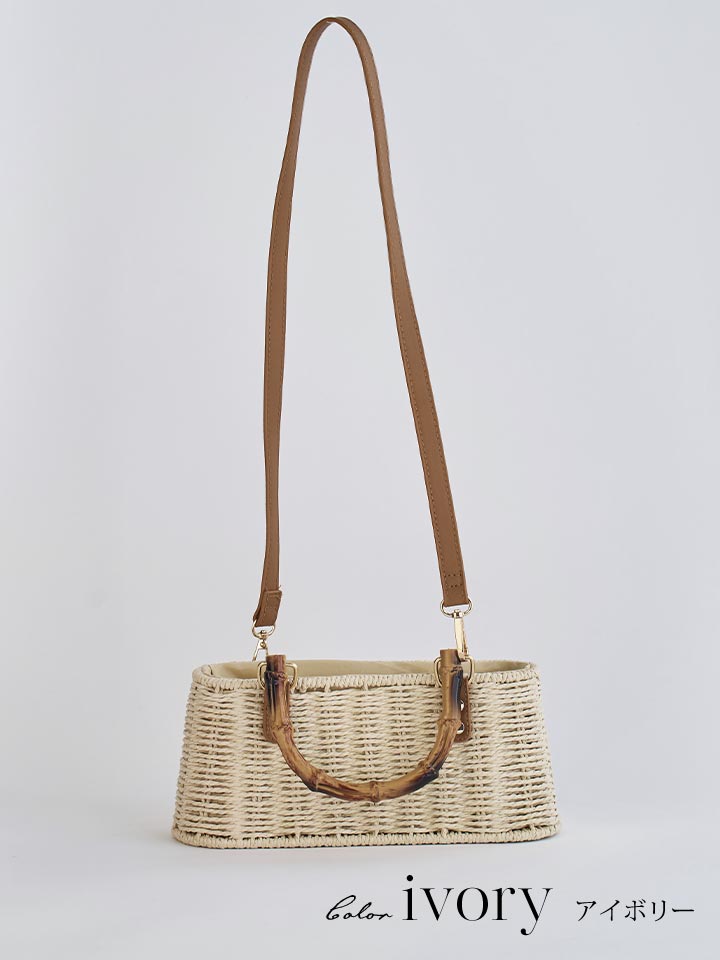 ショルダー紐付き2wayバンブーハンドルナチュラルかごバッグ【2カラー】 [YB-2414-YN]
