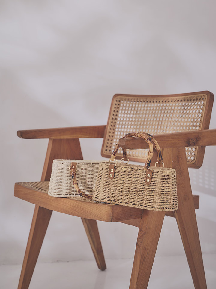 涼しげな編み込みデザインと天然感のあるバンブーハンドルが、