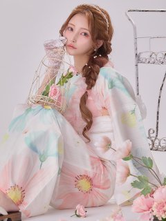 【コラボ浴衣】藍水彩フラワー浴衣/スウィート水彩ピンクコスモス浴衣【浴衣3点セット 浴衣/帯/下駄】【予約 / 4月下旬発送予定】 [Y-9435-nz-dzm-NV-F-Y-9433-nz-dzm-P-F-26AMMC-260405]