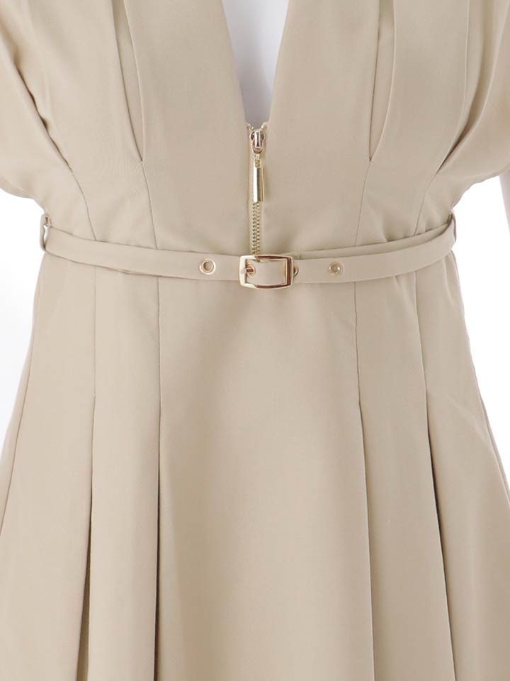 ショートスリーブ/ギャザー/ジップ/谷間見せ/ベルト/プリーツスカート/トレンチ生地/ミニドレス/キャバドレス【S-Mサイズ/2カラー】[OF03] 【YN】dzwsAG