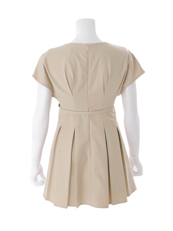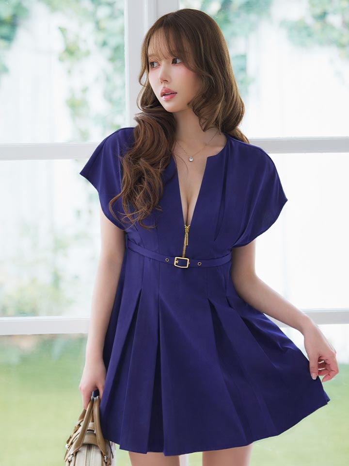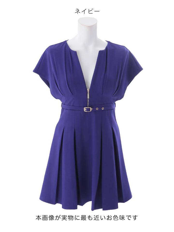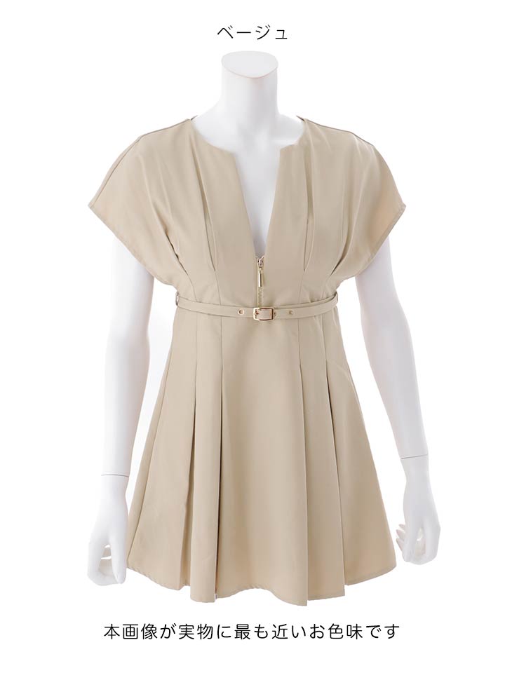 ショートスリーブ/ギャザー/ジップ/谷間見せ/ベルト/プリーツスカート/トレンチ生地/ミニドレス/キャバドレス【S-Mサイズ/2カラー】[OF03] 【YN】dzwsAG [5931YNdzwsAG-260408-2]