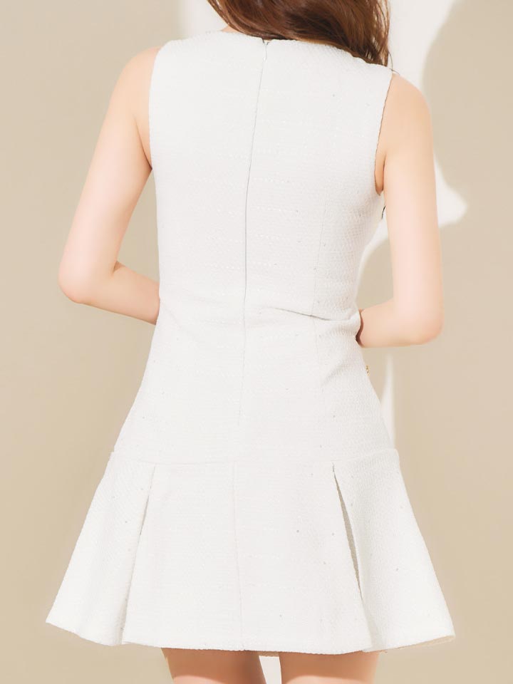 スパンコール/ツイード/ジップ/ノースリーブ/プリーツ/ゴールドチェーン/ミニドレス/キャバドレス【XS-Lサイズ/1カラー】[OF03] 【IM】