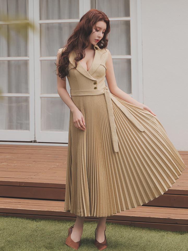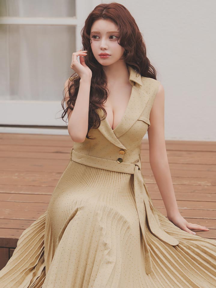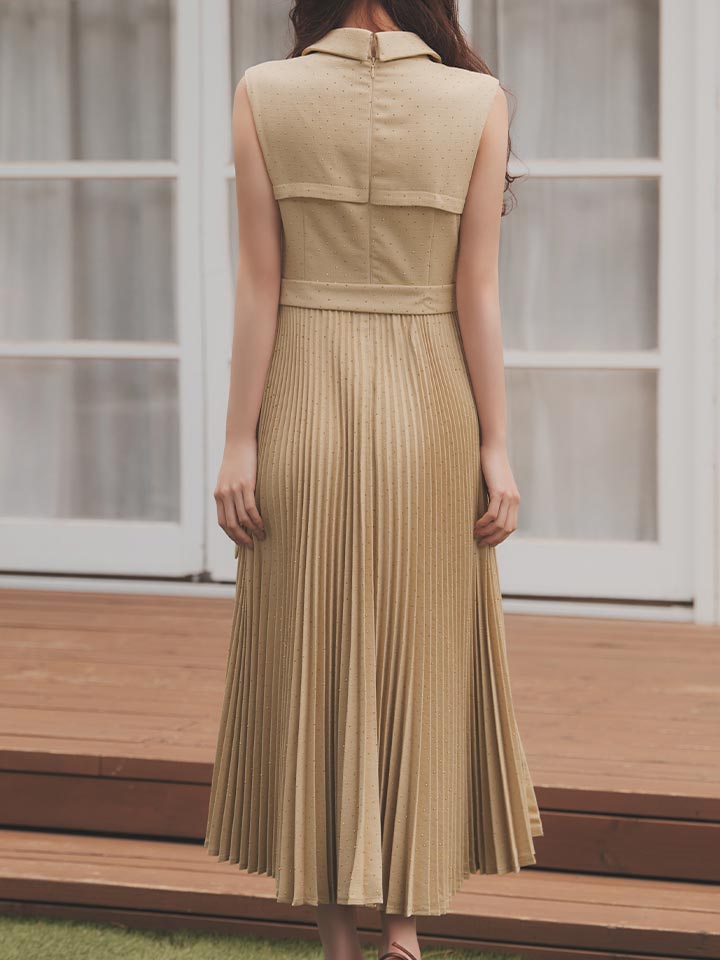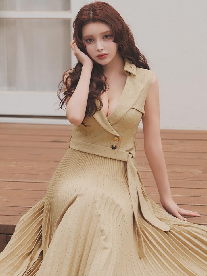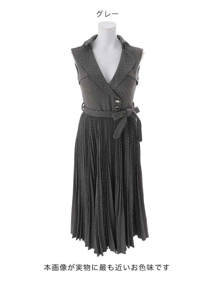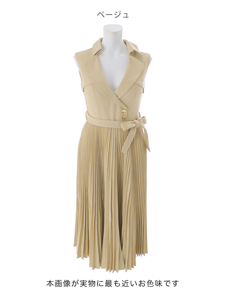 【sifeel/シフィール】襟付き/ビジュー/トレンチ/テーラード/ベルト/ノースリーブ/プリーツスカート/ワンピース/ロングドレス/キャバドレス【S-Mサイズ/2カラー】[OF03] 【YN】dzwvLD [5928YNdzwvLD-260410-2]
