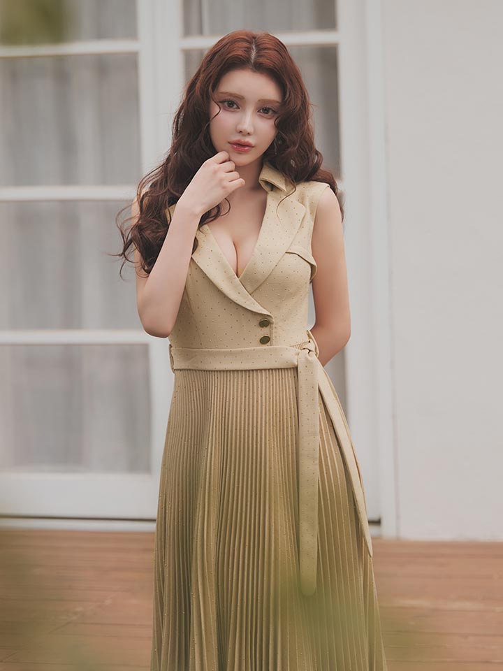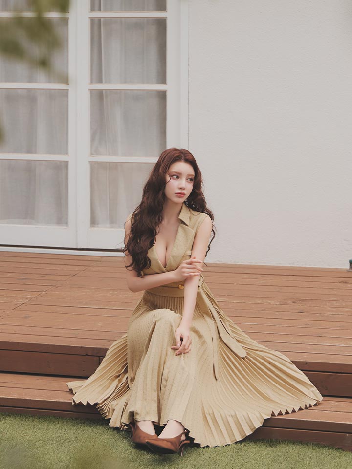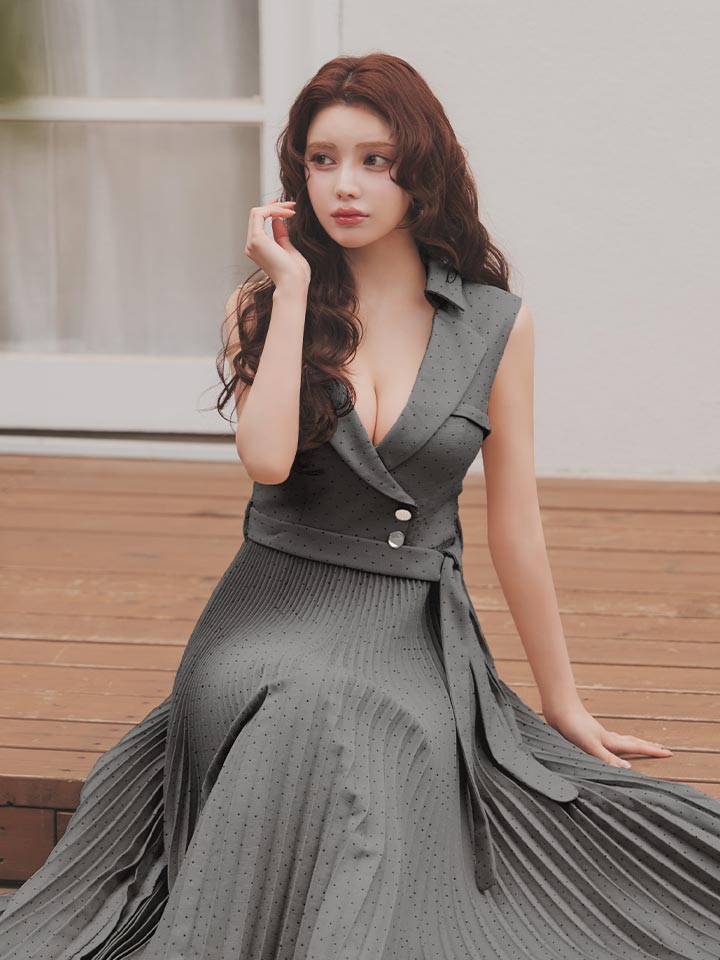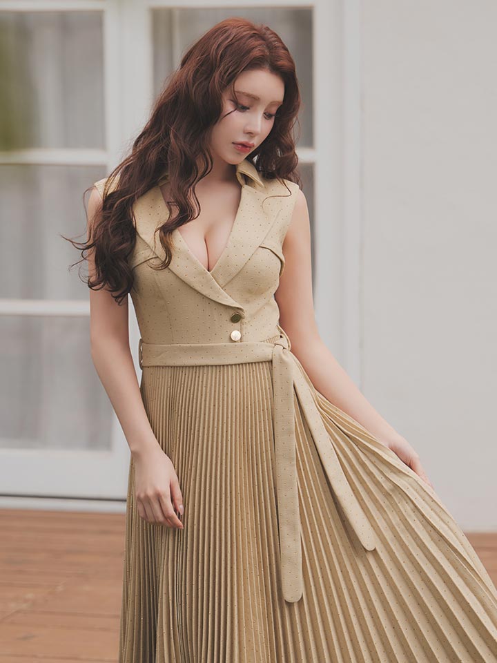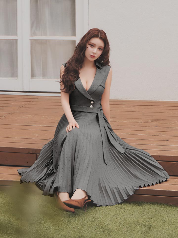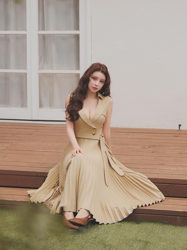 【sifeel/シフィール】襟付き/ビジュー/トレンチ/テーラード/ベルト/ノースリーブ/プリーツスカート/ワンピース/ロングドレス/キャバドレス【S-Mサイズ/2カラー】[OF03] 【YN】dzwvLD [5928YNdzwvLD-260410-2]