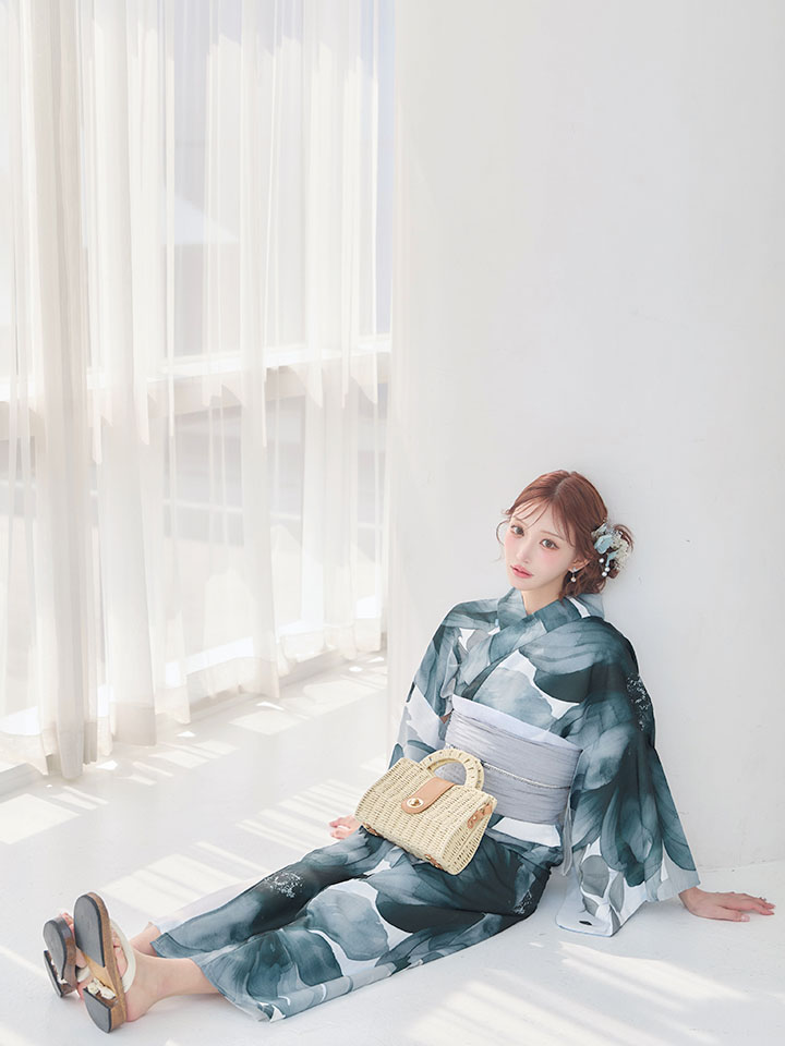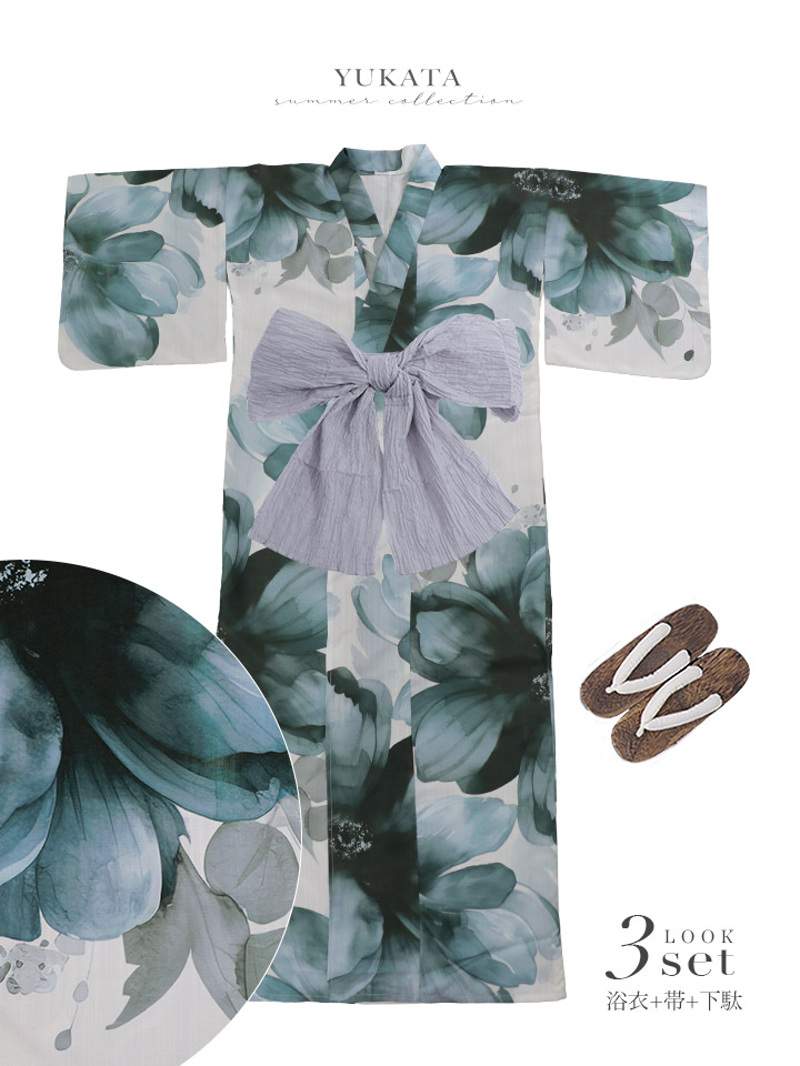 送料無料!水彩ブルーフラワー浴衣【浴衣3点セット 浴衣/帯/下駄】[OF04]【予約 / 5月上旬発送予定】 [Y-9353-nz-dzm-BL-F-26AS-260413]